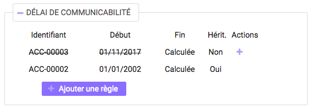 Une même unité archivistique peut avoir plusieurs règles définies dans la même catégorie de règles (Exemple : plusieurs délais de communicabilité).