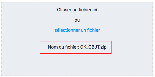 - De façon plus intuitive en faisant glisser le fichier ou dossier de votre ordinateur à la page d’import. Pour cela le fichier ou dossier doit être déplacé dans la zone grisée de téléchargement.