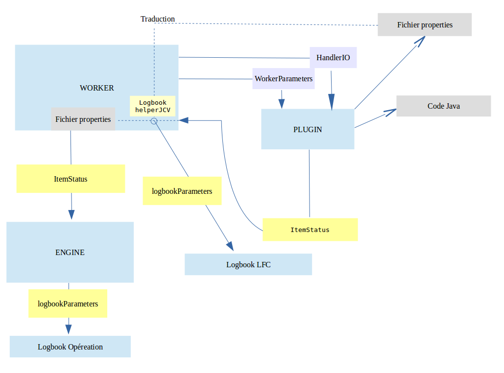 Le plugin worker est une classe java qui réaslise des actions dans le workflow comme les Handler. Dans le workflow, si l’action traite une action qui a besoin un enregistrement JCV, le plugin sera remplacé le Handler.