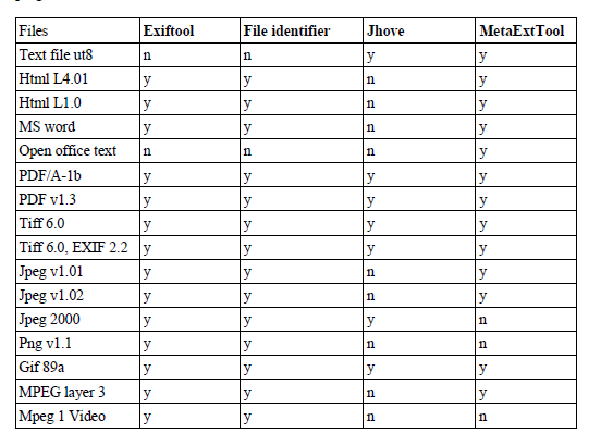la mise en œuvre des opérations d’extraction de métadonnées internes par un outil présuppose que celui-ci est parvenu à identifier le format du fichier et à interpréter ses métadonnées internes ;