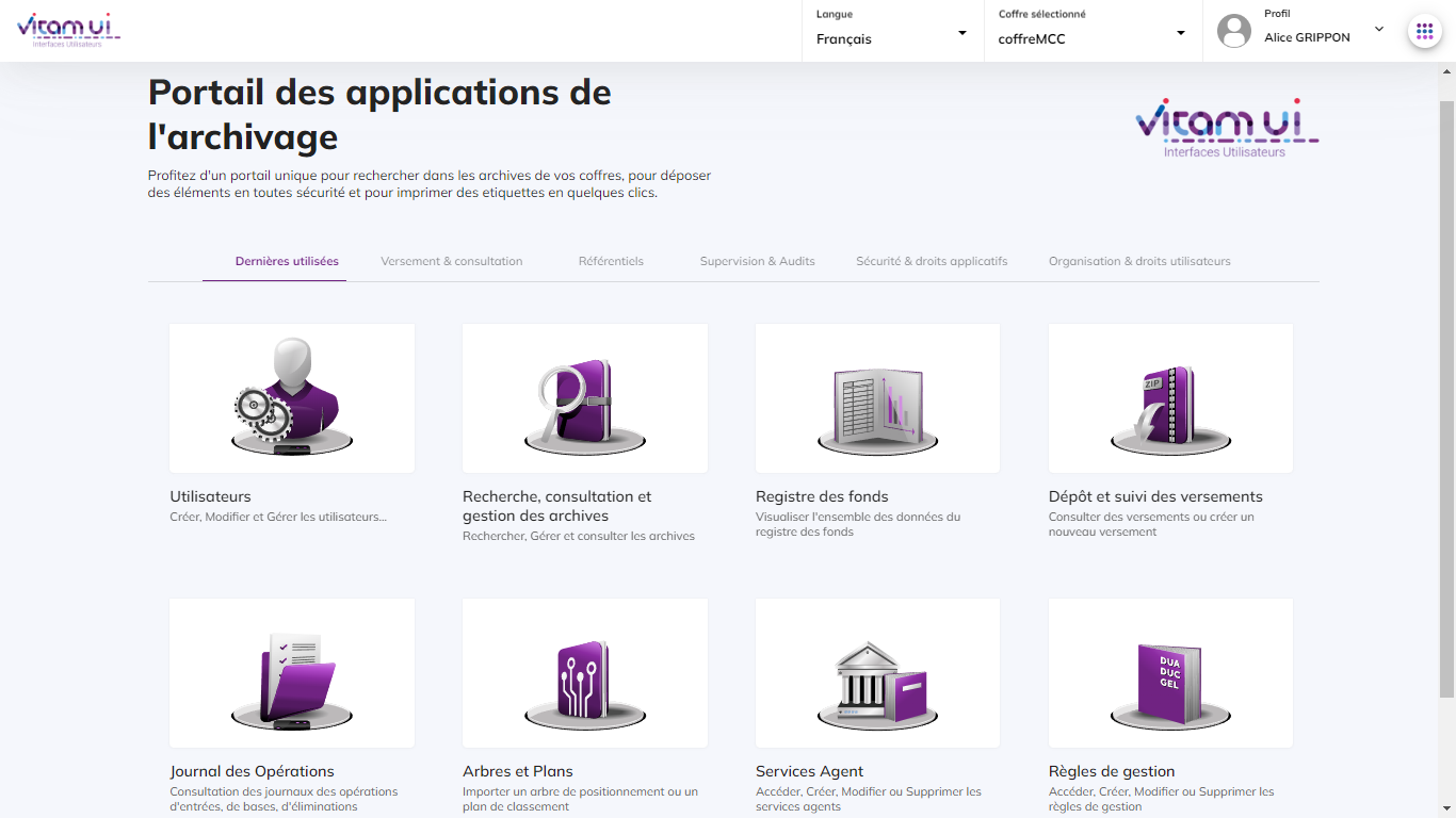 Nota bene : Les captures d’écran du présent document sont issues de l’IHM Vitam UI. Toutefois les principes et fonctionnalités présentées ici sont valables également pour l’IHM démo.