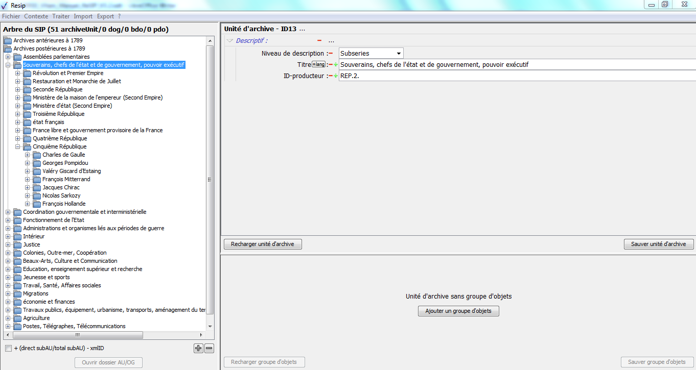 d’importer des structures arborescentes d’archives et les fichiers qui les représentent ;