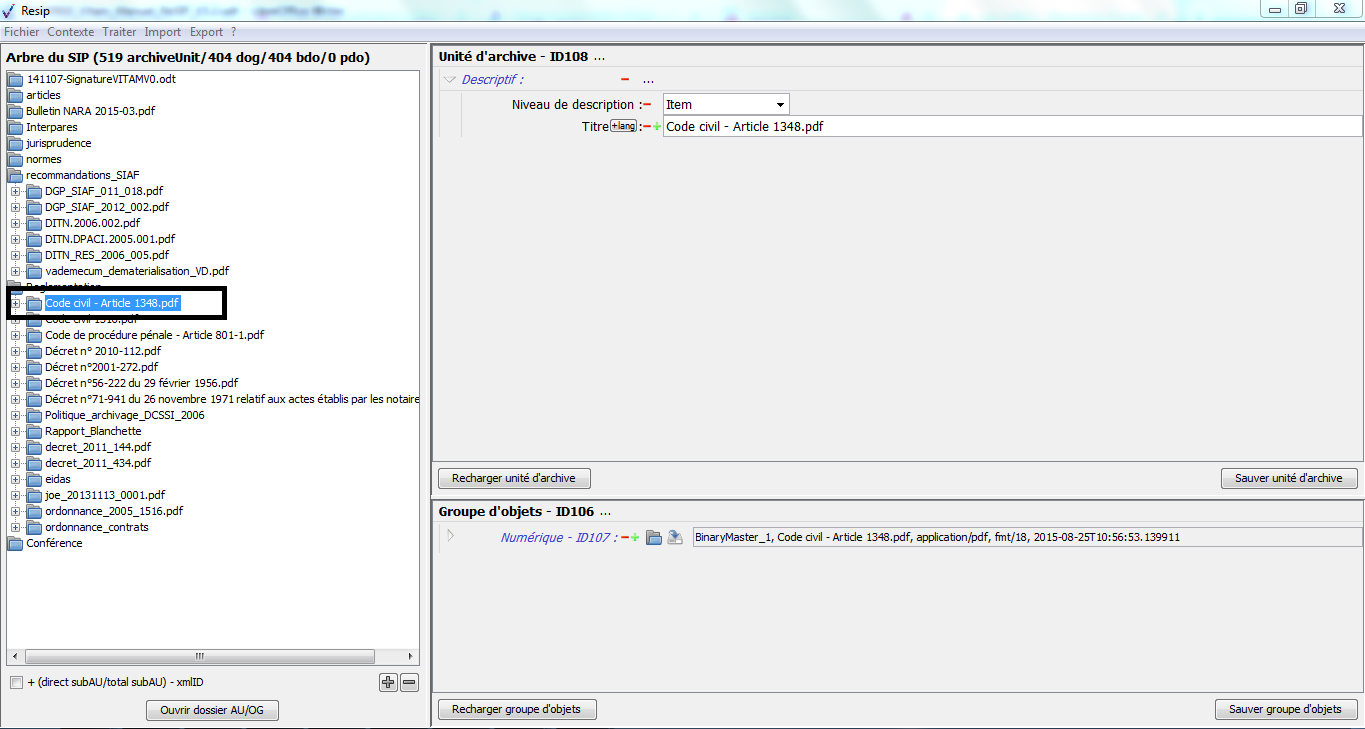 les ArchiveUnits correspondent à la description des archives elles-mêmes, qu’il s’agisse de :
