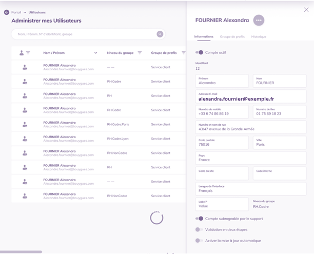 Pour un utilisateur existant : modification automatisé en cas de changement des informations utilisateurs, dont ses droits.