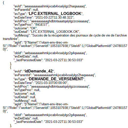 Par ailleurs, il est attendu que les journaux à récupérer correspondent à la modélisation attendue par le standard SEDA et la solution logicielle Vitam :