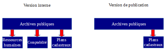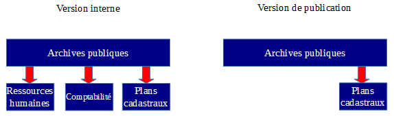 On peut également choisir de maintenir plusieurs versions d’un arbre de positionnement ou d’un plan de classement à des fins de processus interne d’un service d’archives et de gestion des accès :