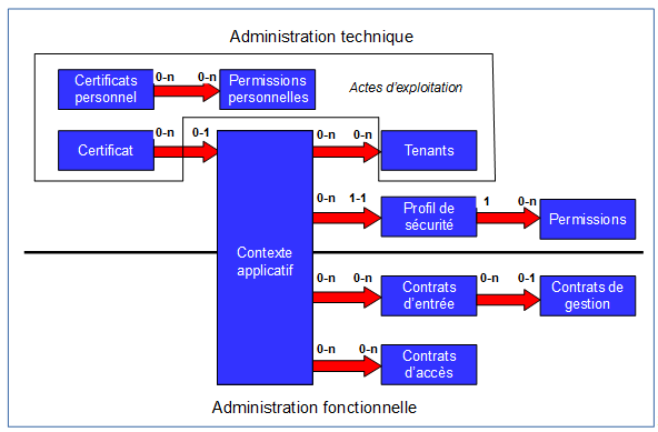 les contextes applicatifs, les profils de sécurité, les contrats d’entrée et les contrats d’accès.