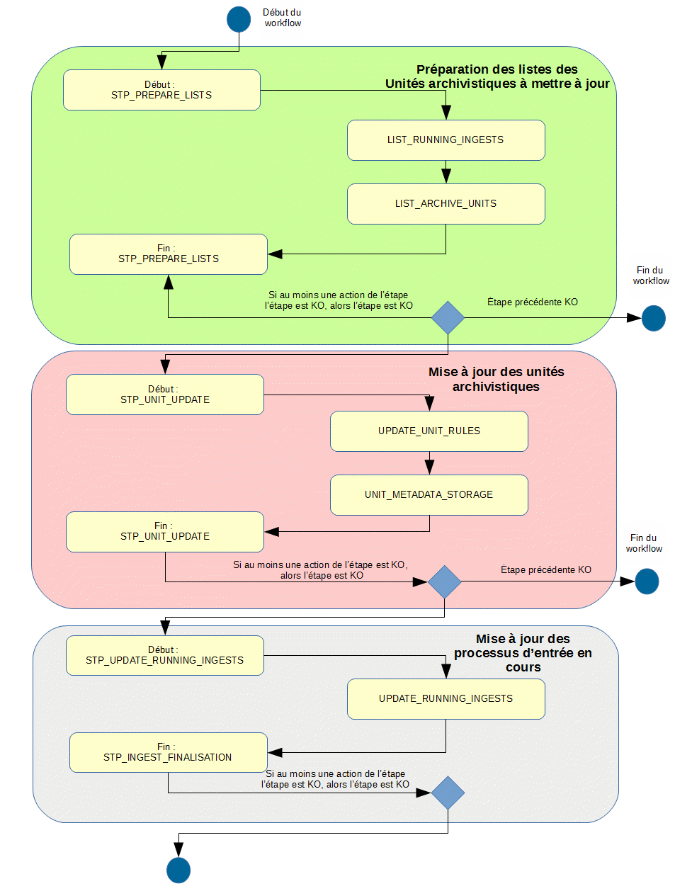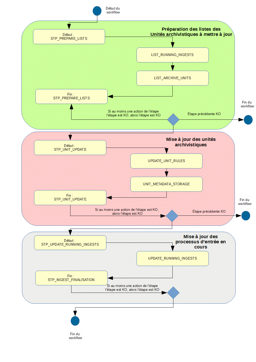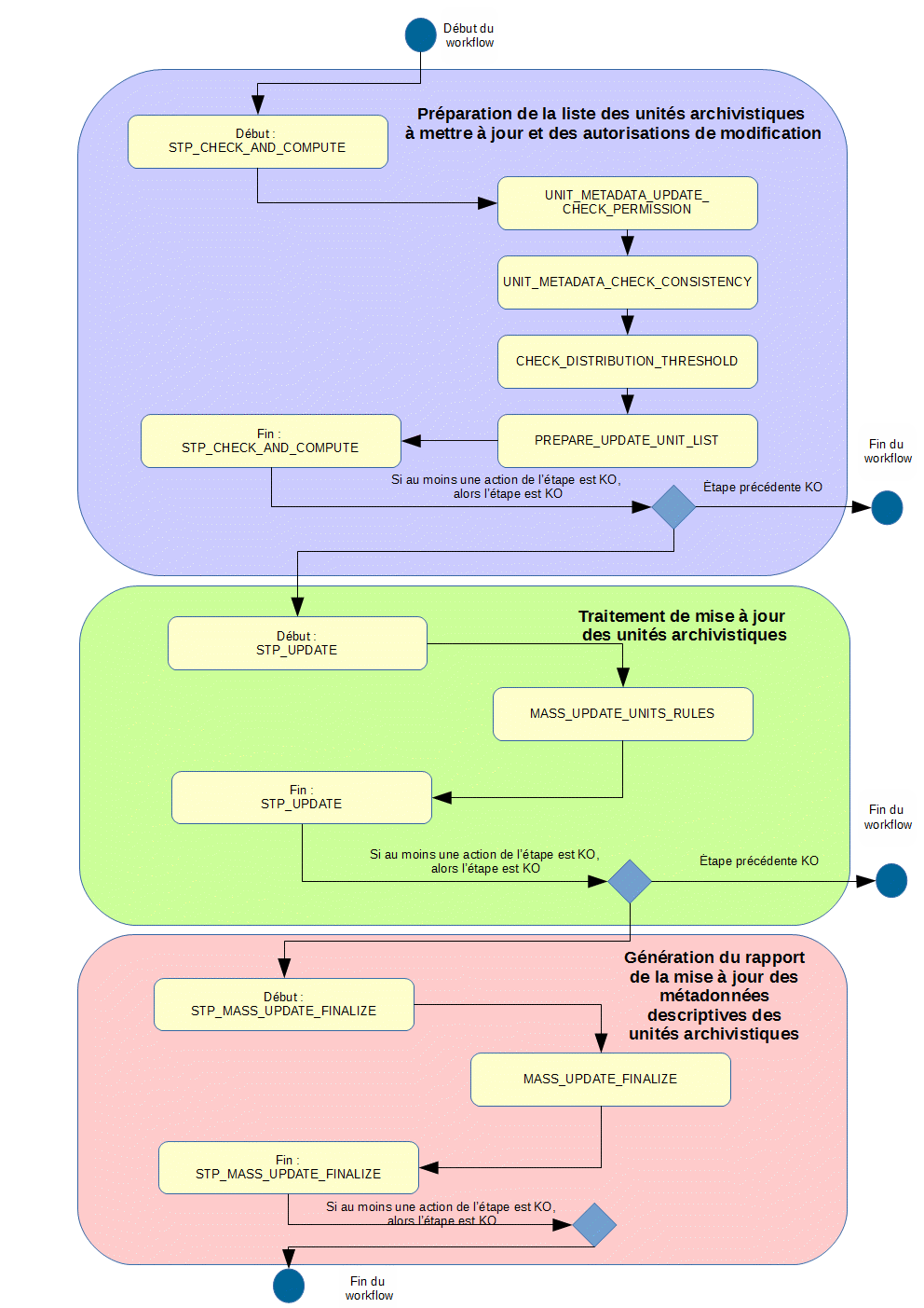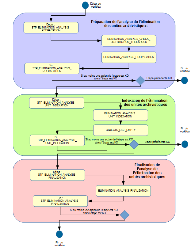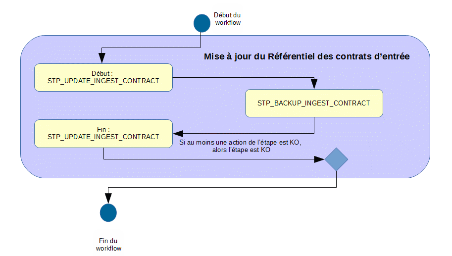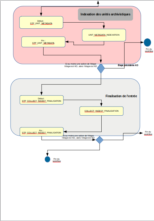 Fatal : le traitement s’est terminé en échec a cause d’un problème technique. L’état du système dépend de la nature du traitement en fatal et une intervention humaine est requise pour expertiser et résoudre la situation. Lorsque le statut FATAL survient à l’intérieur d’une étape (par exemple dans une des tâches ou une des actions de l’étape), c’est toute l’étape qui est mise en pause. Si cette étape est rejouée, les objets déjà traités avant le problème technique ne sont pas traités à nouveau : le workflow reprend exactement là où il s’était arrêté et commence par rejouer l’action sur l’objet qui a provoqué l’erreur.