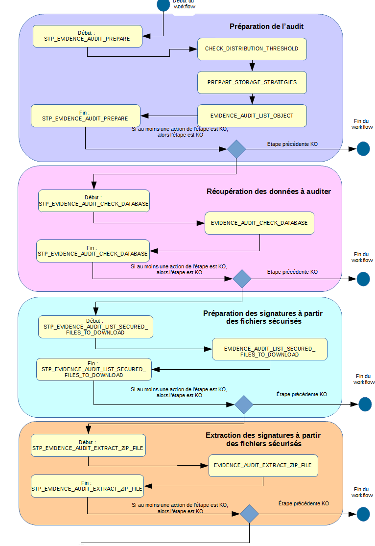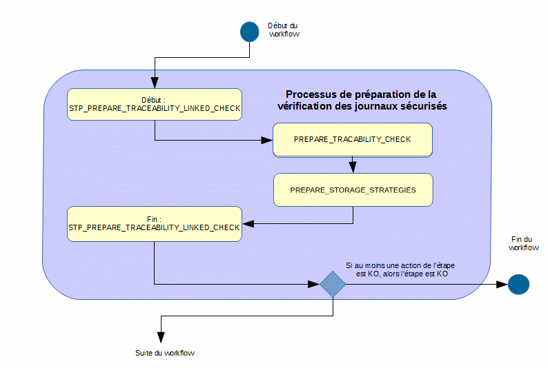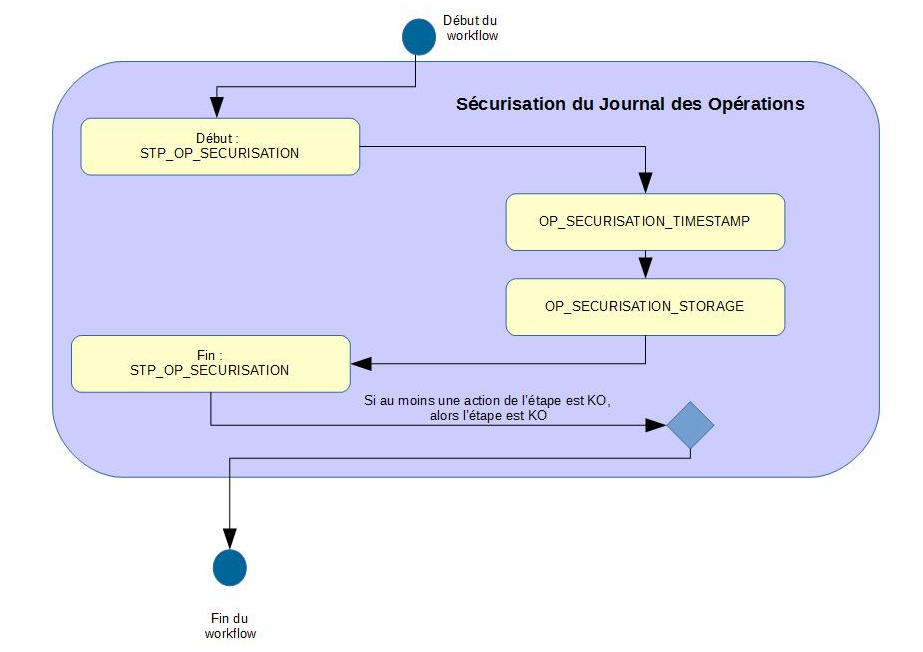 Toutes les étapes, tâches et traitements sont journalisées dans le journal des opérations. Les étapes et actions associées ci-dessous décrivent le processus (clé et description de la clé associée dans le journal des opérations) tel qu’implémenté dans la version actuelle de la solution logicielle Vitam.