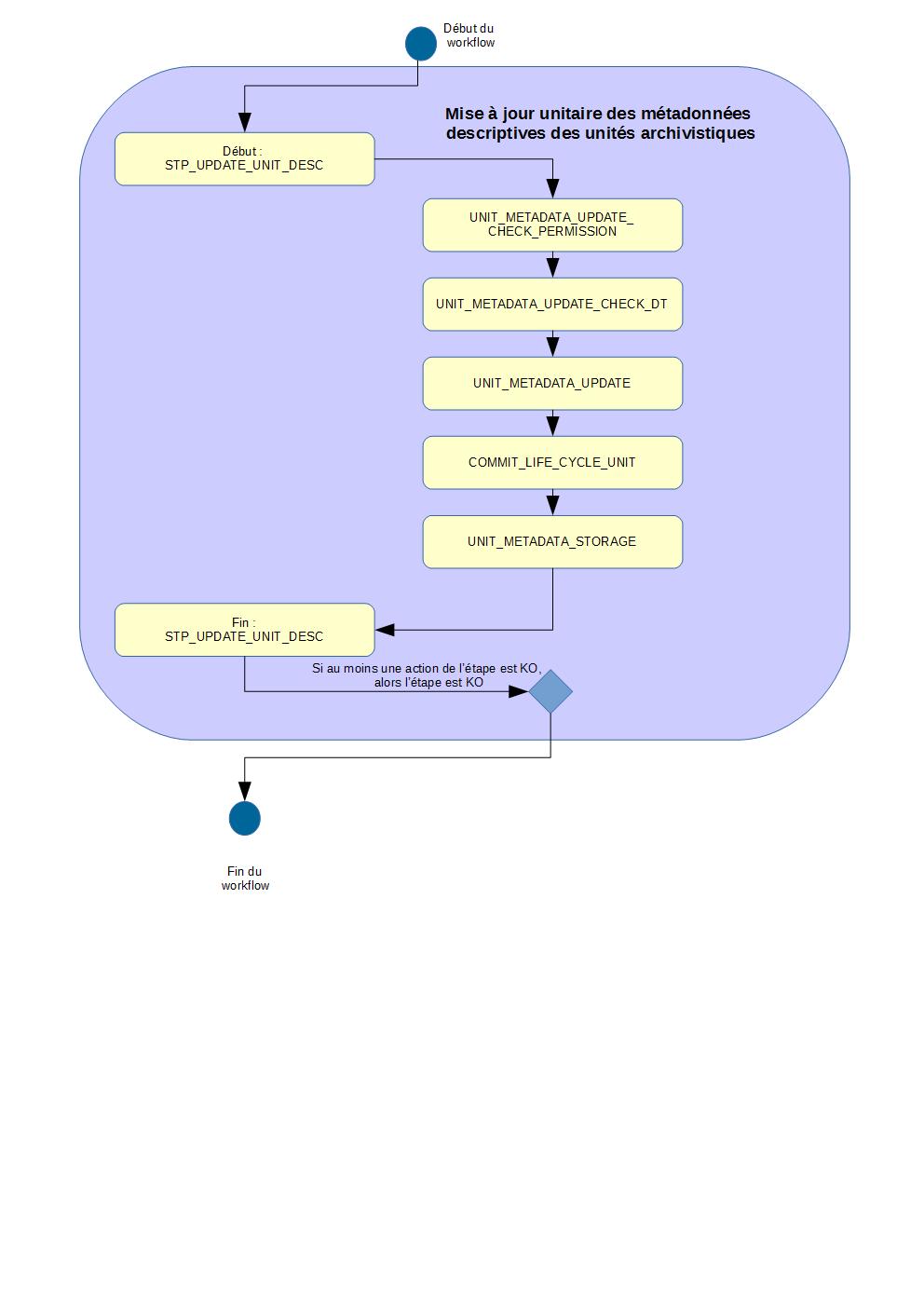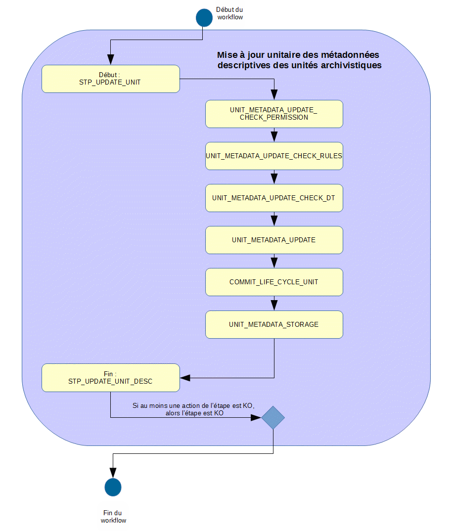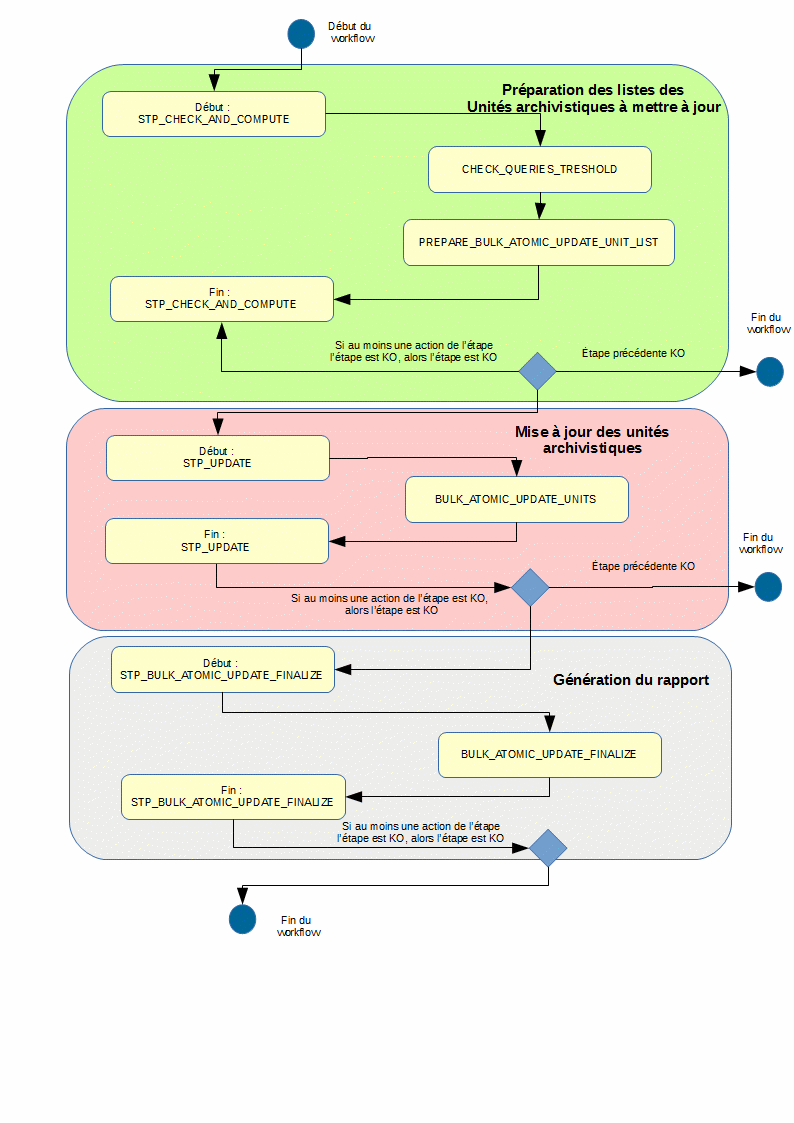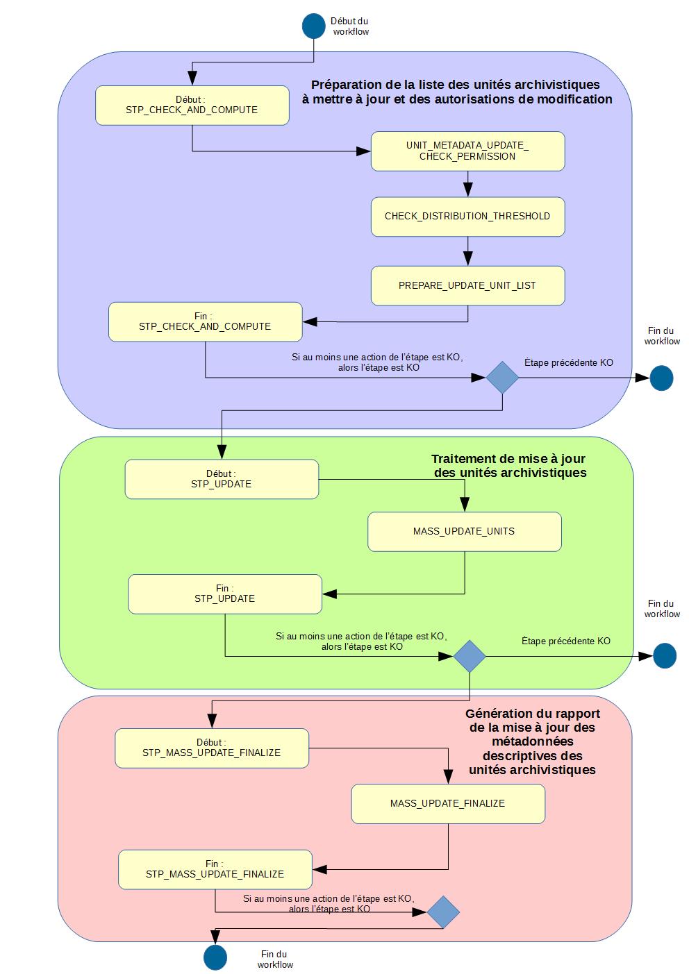 Exemple : une modification de métadonnées en masse d’unités archivistiques dont une partie de la modification est OK et une partie est KO : le statut de l’étape et de l’opération sera Warning.