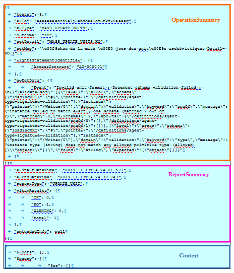 « extendedInfo » : partie libre où chaque type de rapport pourra ajouter des informations qui lui est propre. Ici pas d’information complémentaire ajoutée