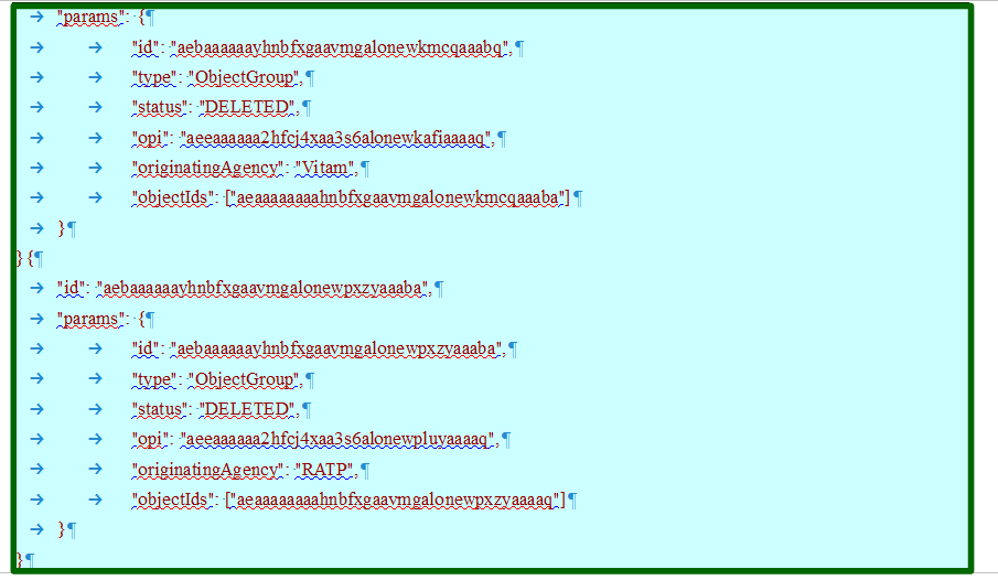 « objectGroupGlobal » : tableau pour chaque objet (version) à supprimer