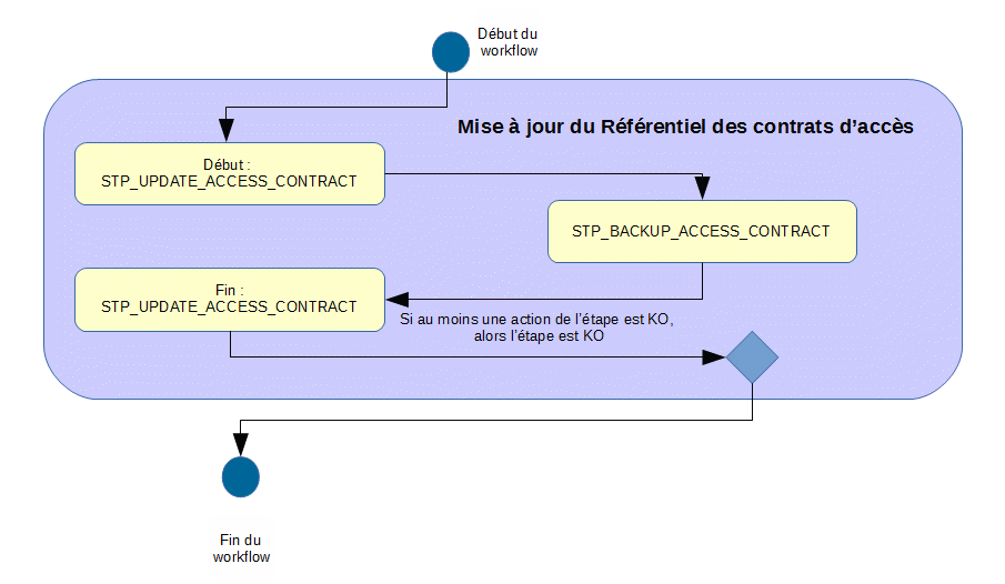 Si une action bloquante est identifiée en erreur, le workflow est alors arrêté en erreur. Seules les actions nécessaires à l’arrêt du workflow sont alors exécutées.