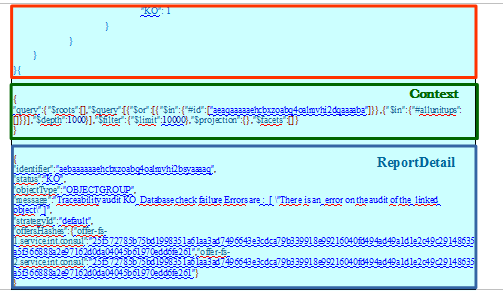 « reportType »: corresponds au modèle du rapport. Chaque opération de masse (audit, élimination…) aura un « reportType » associé . Ici pour le rapport de suppression des versions des got est égale au « DELETE_GOT_VERSIONS »