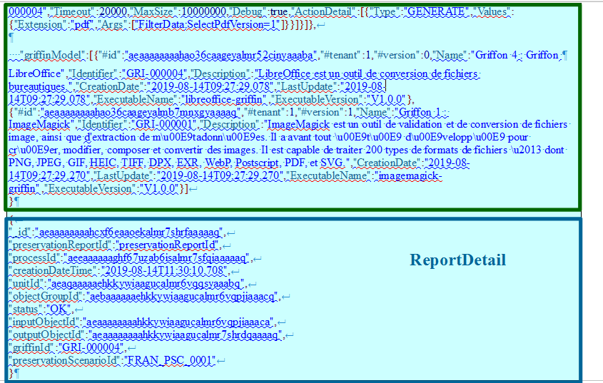 « outputObjectId » : dans le cas d’une génération d’objets binaires, identifiant du nouvel objet technique généré ;