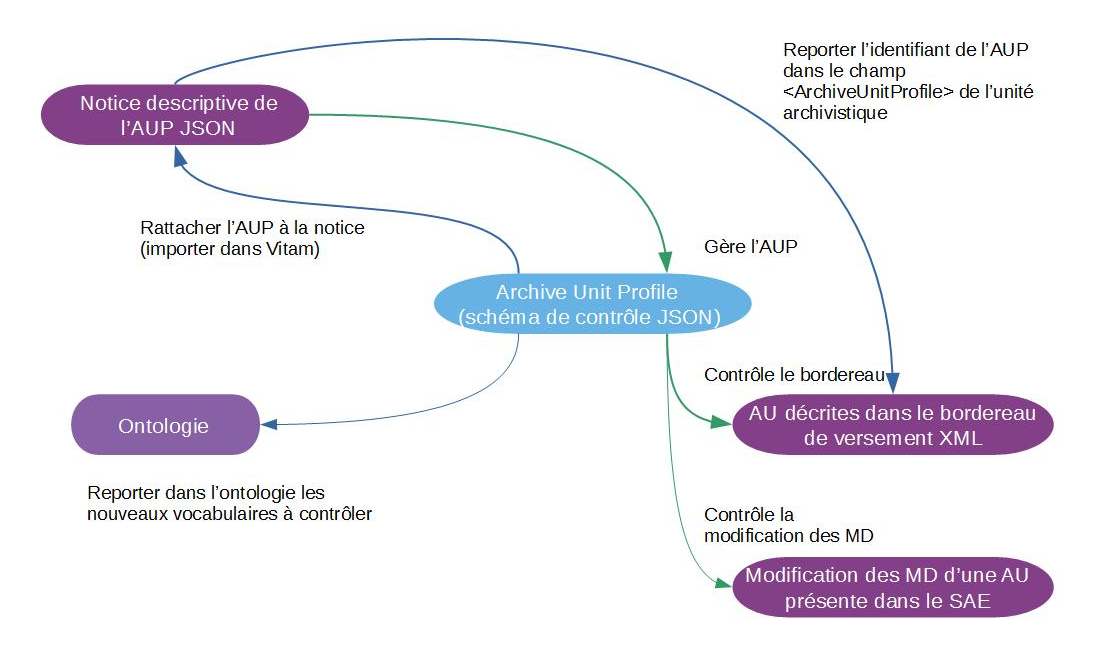 La solution logicielle Vitam offre à un service d’archives ou à un service externe plusieurs fonctionnalités lui permettant de mettre en œuvre des profils d’unité archivistique :