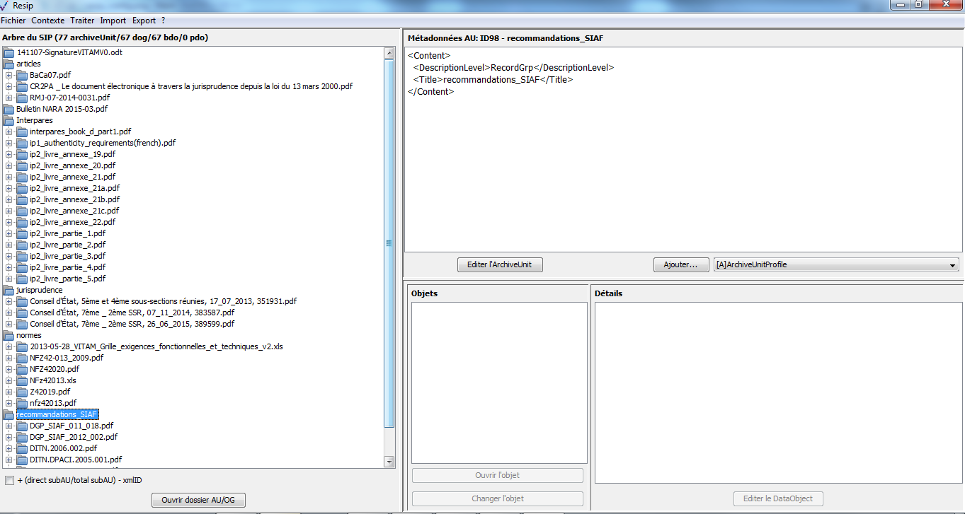 Génération des ArchiveUnits du manifeste SEDA sous forme hiérarchique |