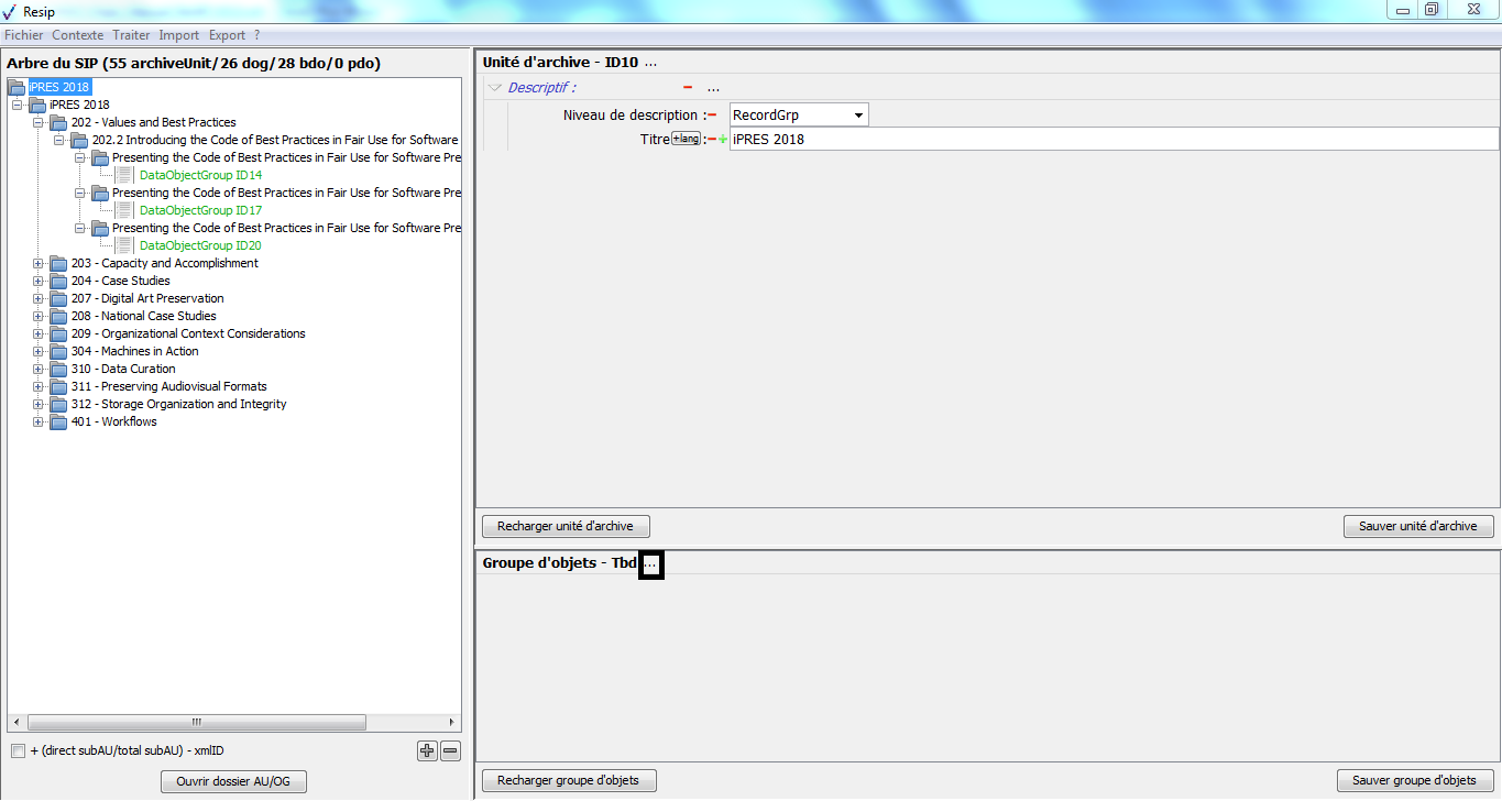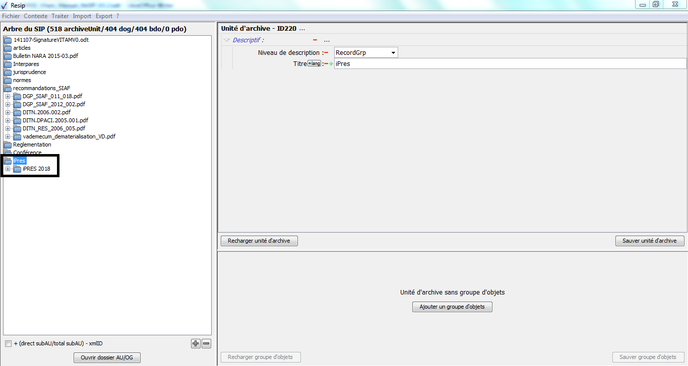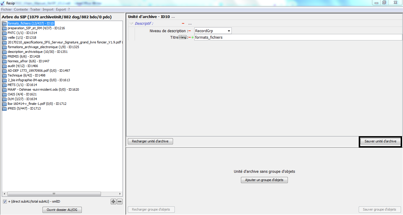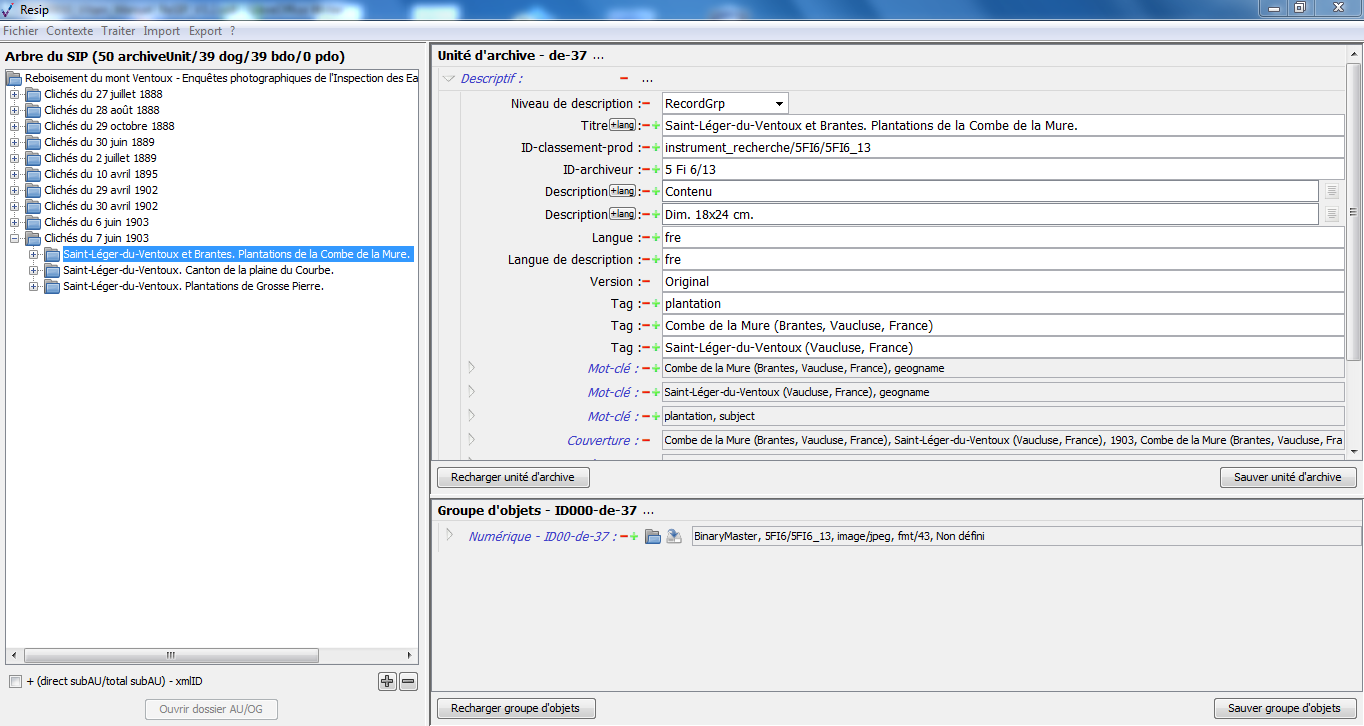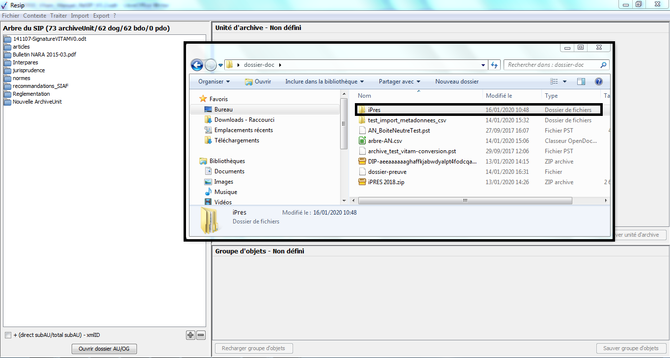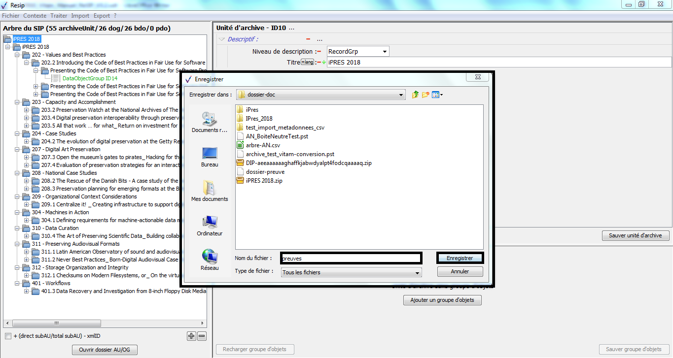 Nous vous invitons également à prendre connaissance du billet de blog du SIAF daté du 30 septembre 2019 et intitulé « Trois outils contribuant à l’archivage numérique » : il vous permettra de voir d’un seul coup d’œil les fonctionnalités de ReSIP en lien avec deux autres outils, Archifiltre et Octave. Ce billet est consultable en suivant ce lien : https://siaf.hypotheses.org/1033[1].