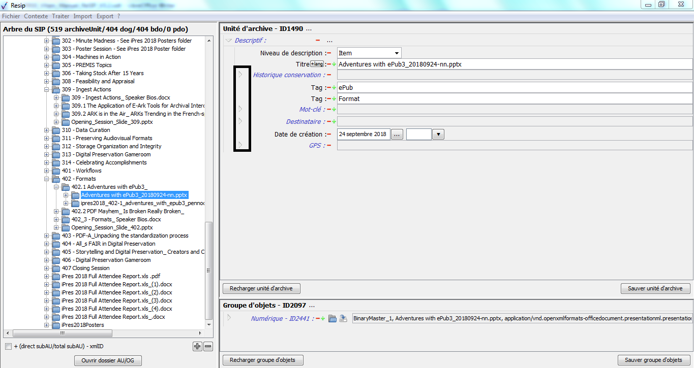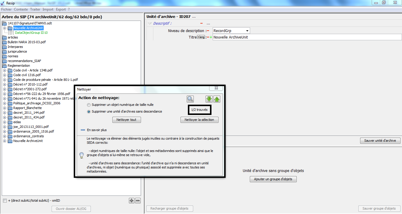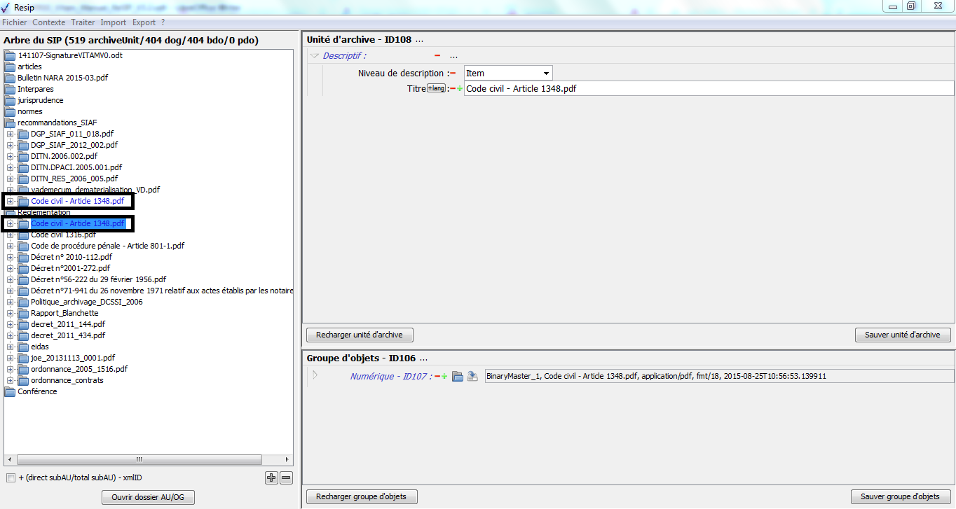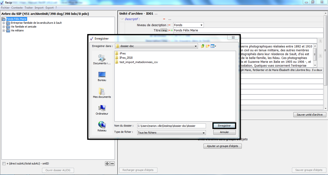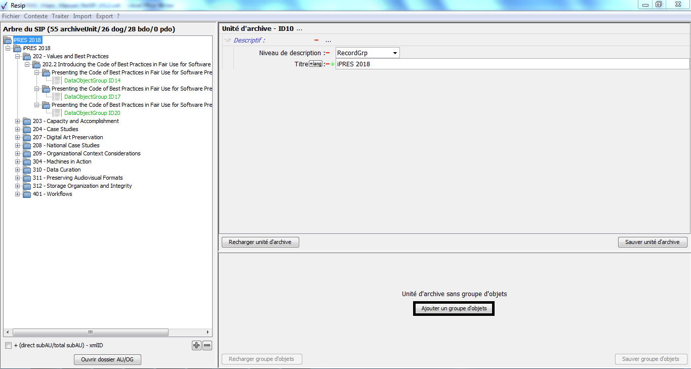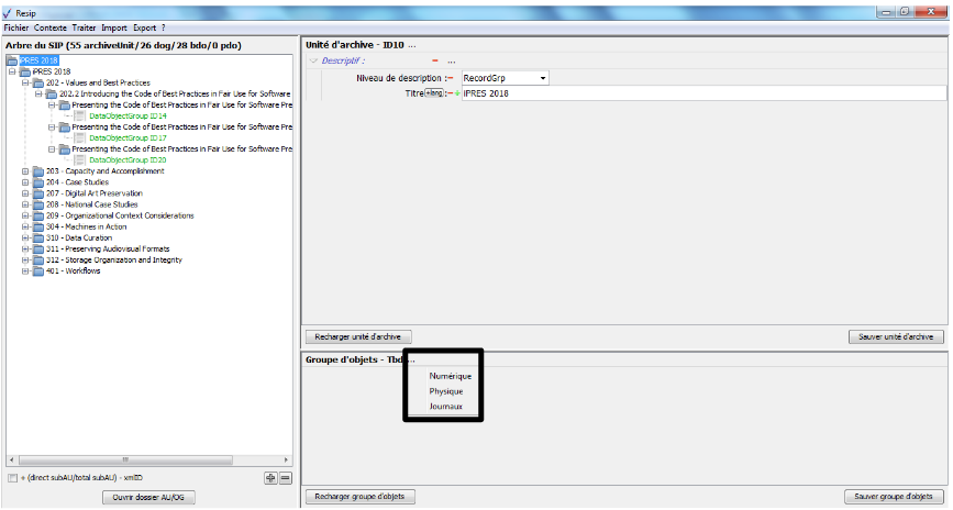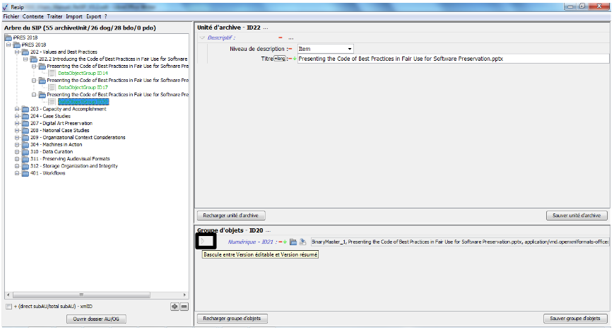 Nous vous invitons également à prendre connaissance du billet de blog du SIAF daté du 30 septembre 2019 et intitulé « Trois outils contribuant à l’archivage numérique » : il vous permettra de voir d’un seul coup d’œil les fonctionnalités de ReSIP en lien avec deux autres outils, Archifiltre et Octave. Ce billet est consultable en suivant ce lien : https://siaf.hypotheses.org/1033[1].