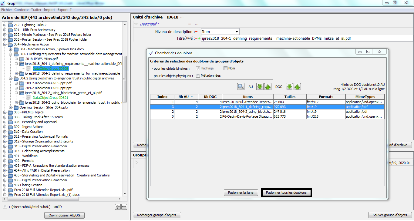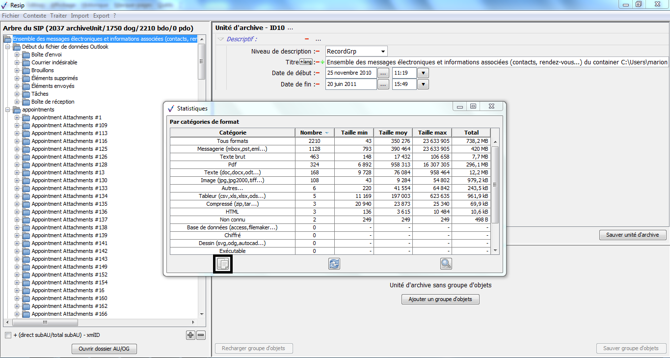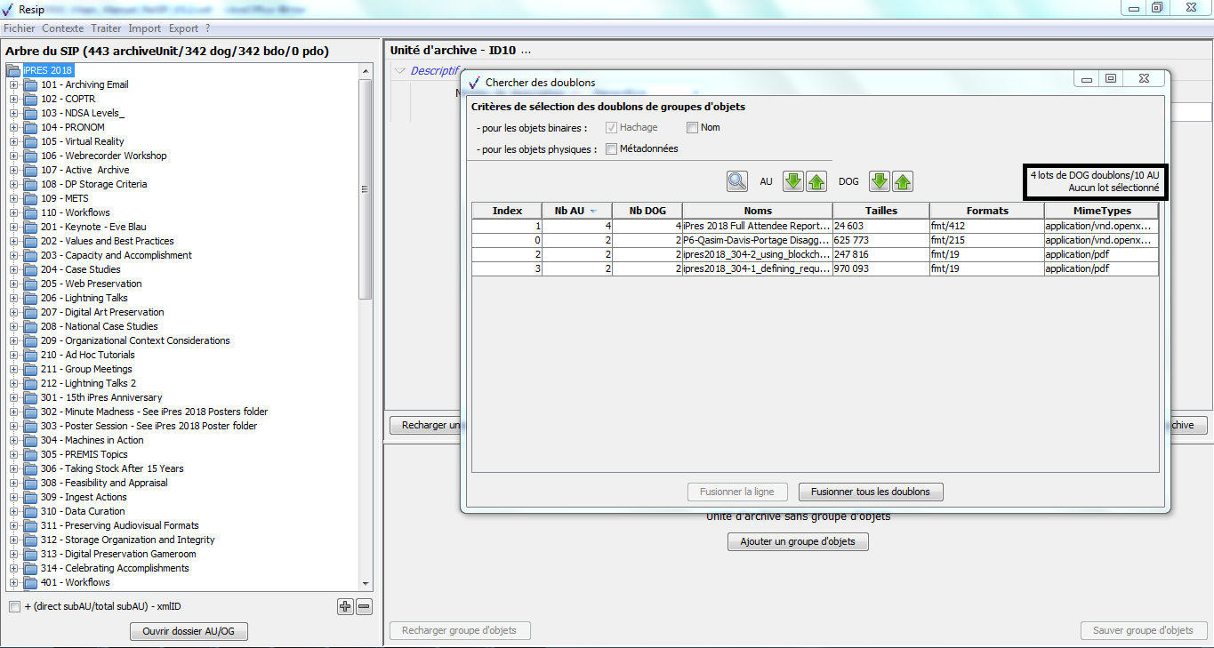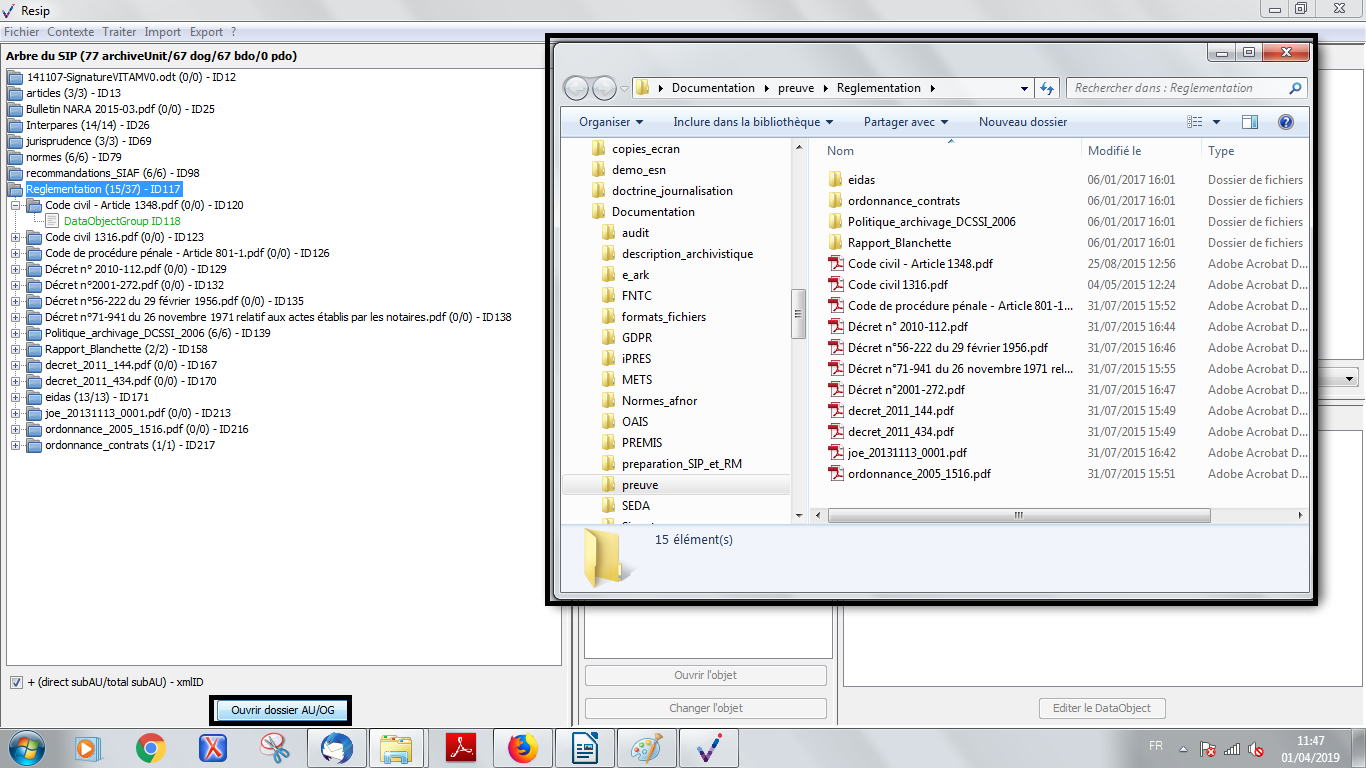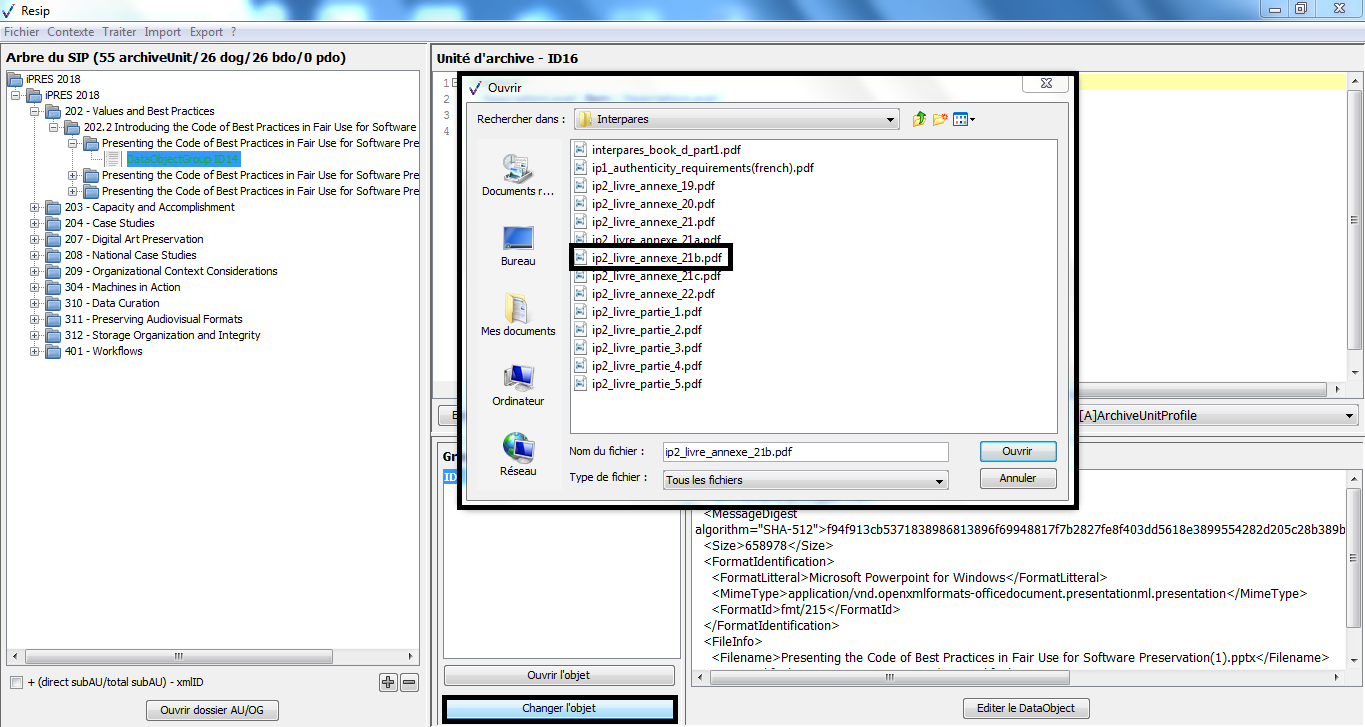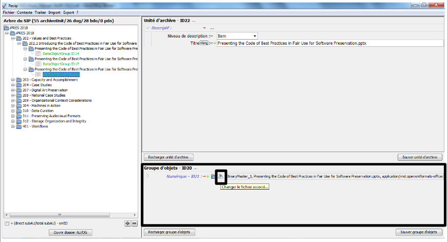 Nous vous invitons également à prendre connaissance du billet de blog du SIAF daté du 30 septembre 2019 et intitulé « Trois outils contribuant à l’archivage numérique » : il vous permettra de voir d’un seul coup d’œil les fonctionnalités de ReSIP en lien avec deux autres outils, Archifiltre et Octave. Ce billet est consultable en suivant ce lien : https://siaf.hypotheses.org/1033[1].