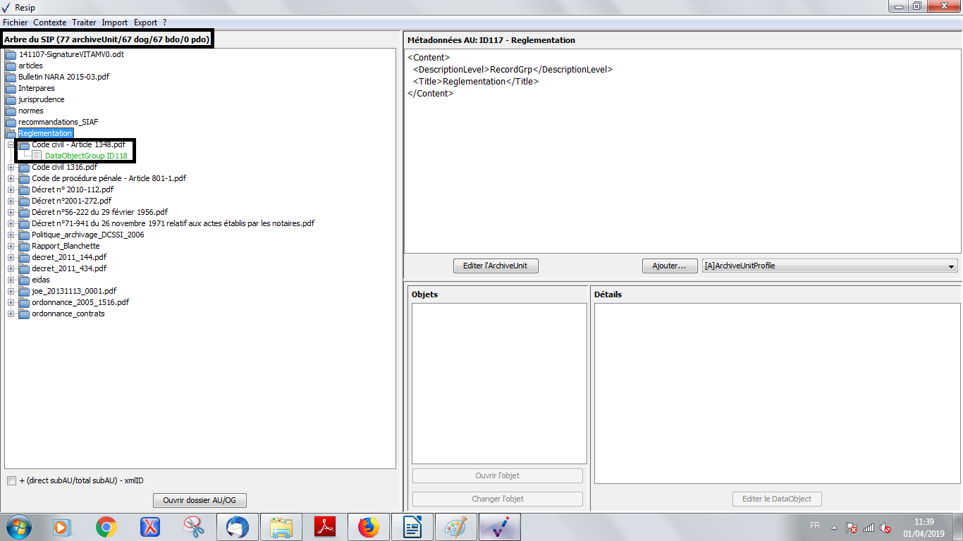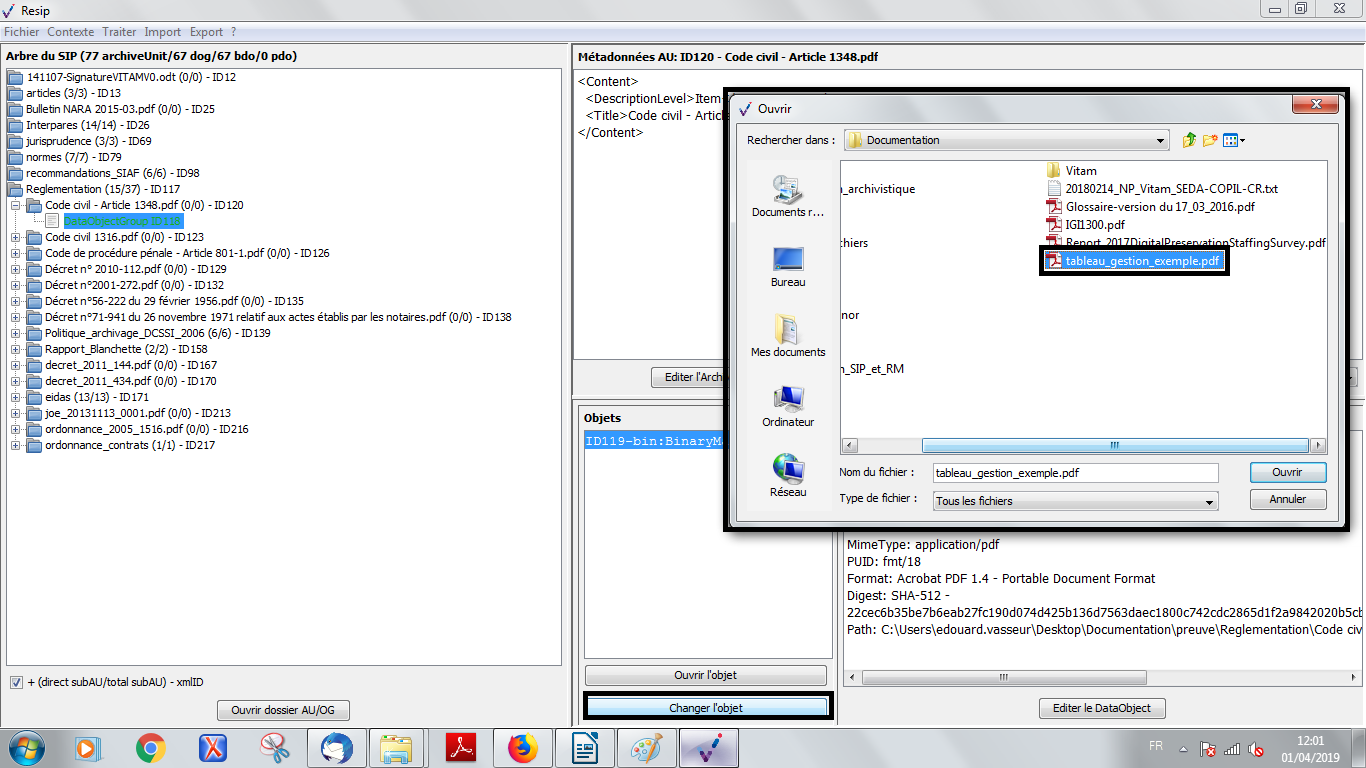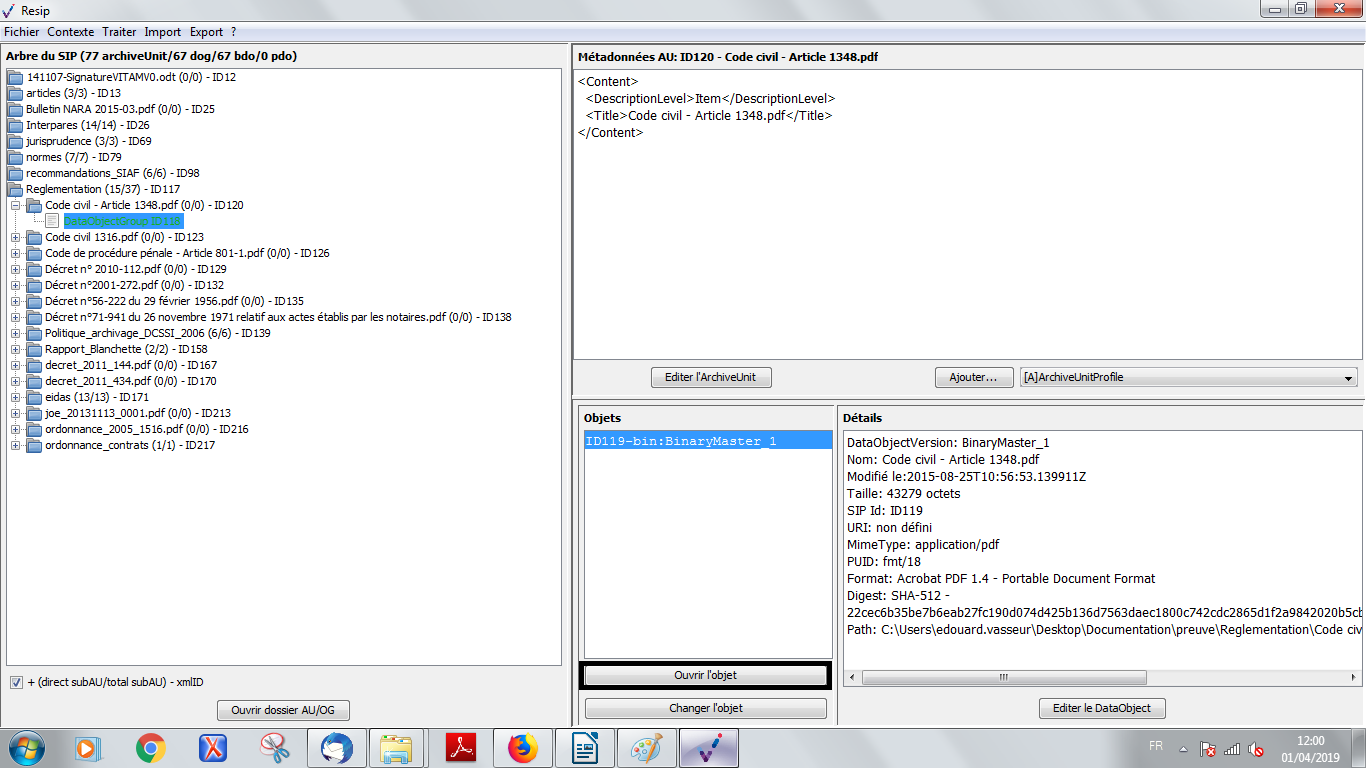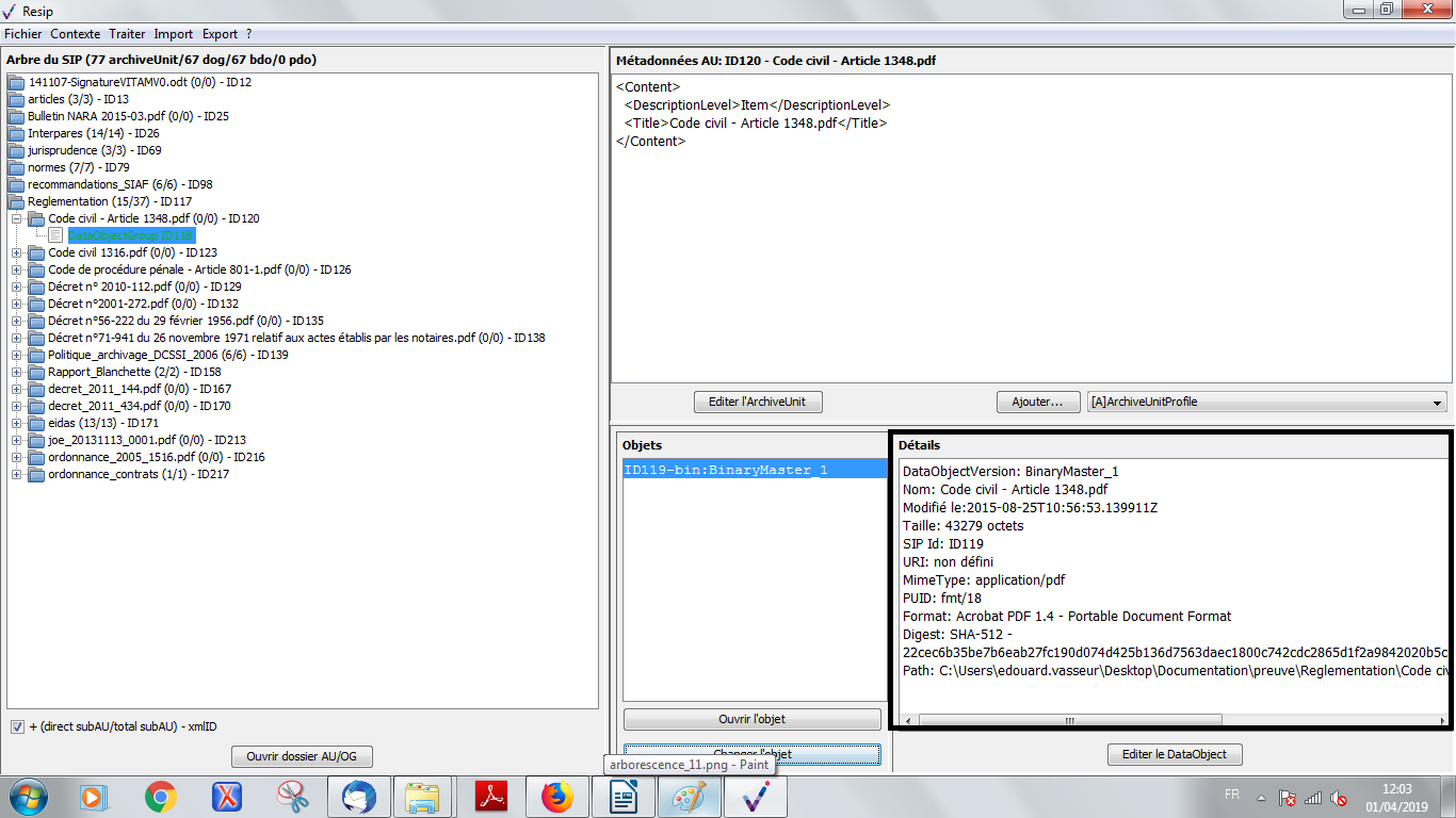 les BinaryDataObject correspondent aux fichiers numériques représentant les archives ;