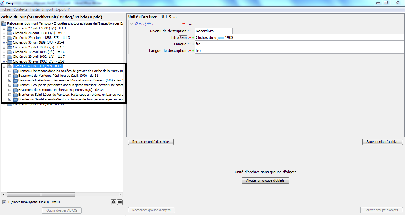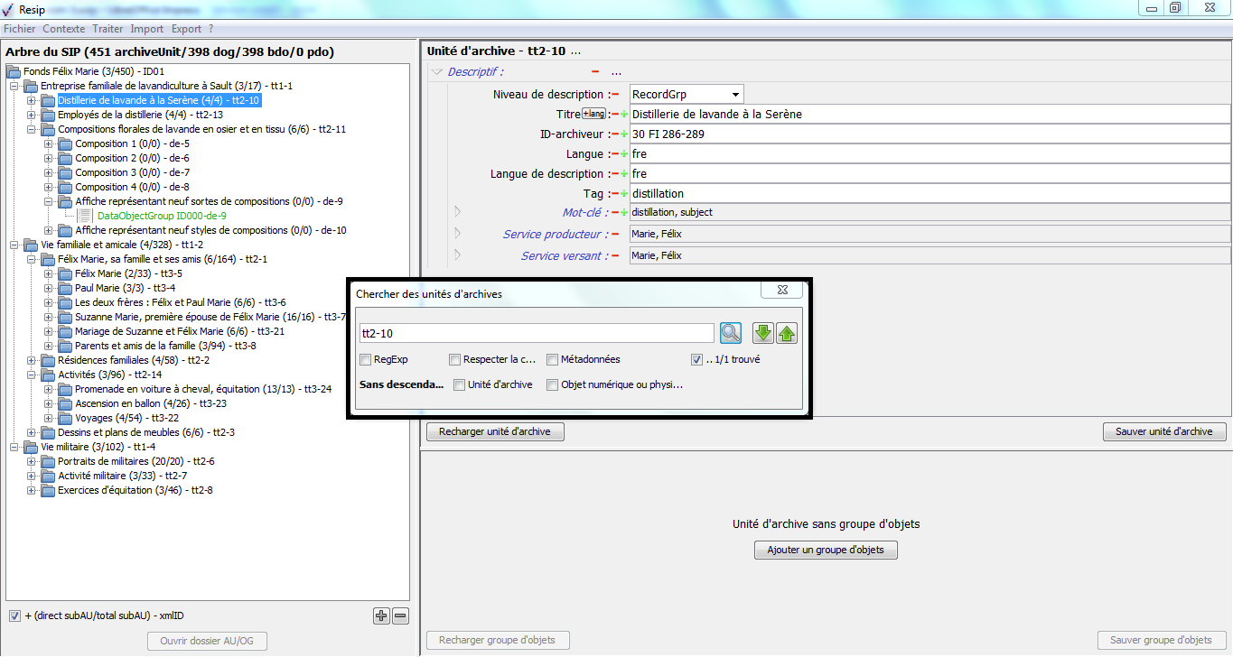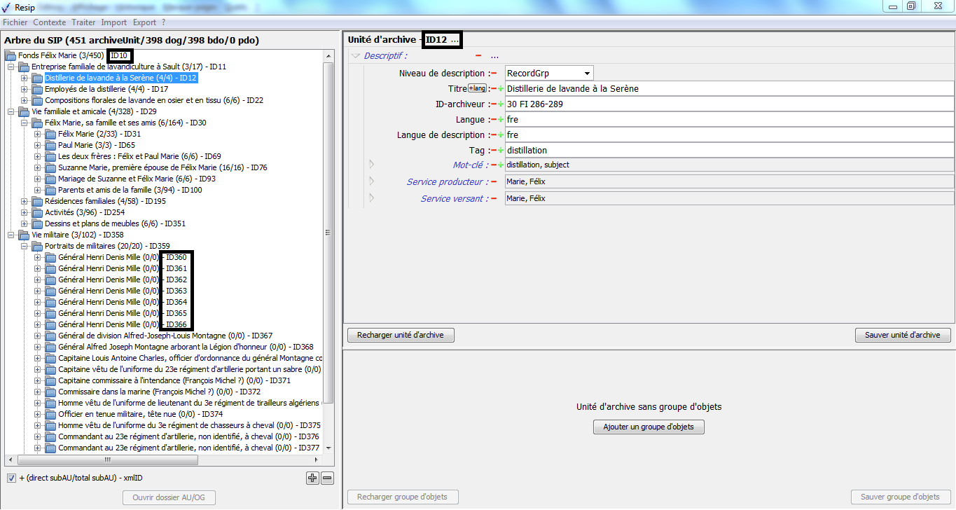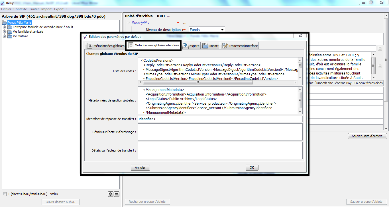 les ArchiveUnits correspondent à la description des archives elles-mêmes, qu’il s’agisse de :