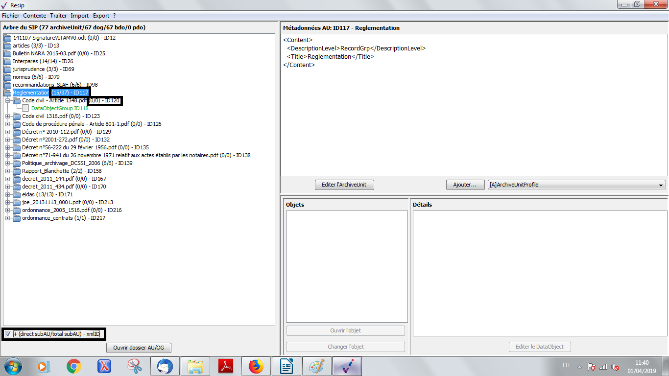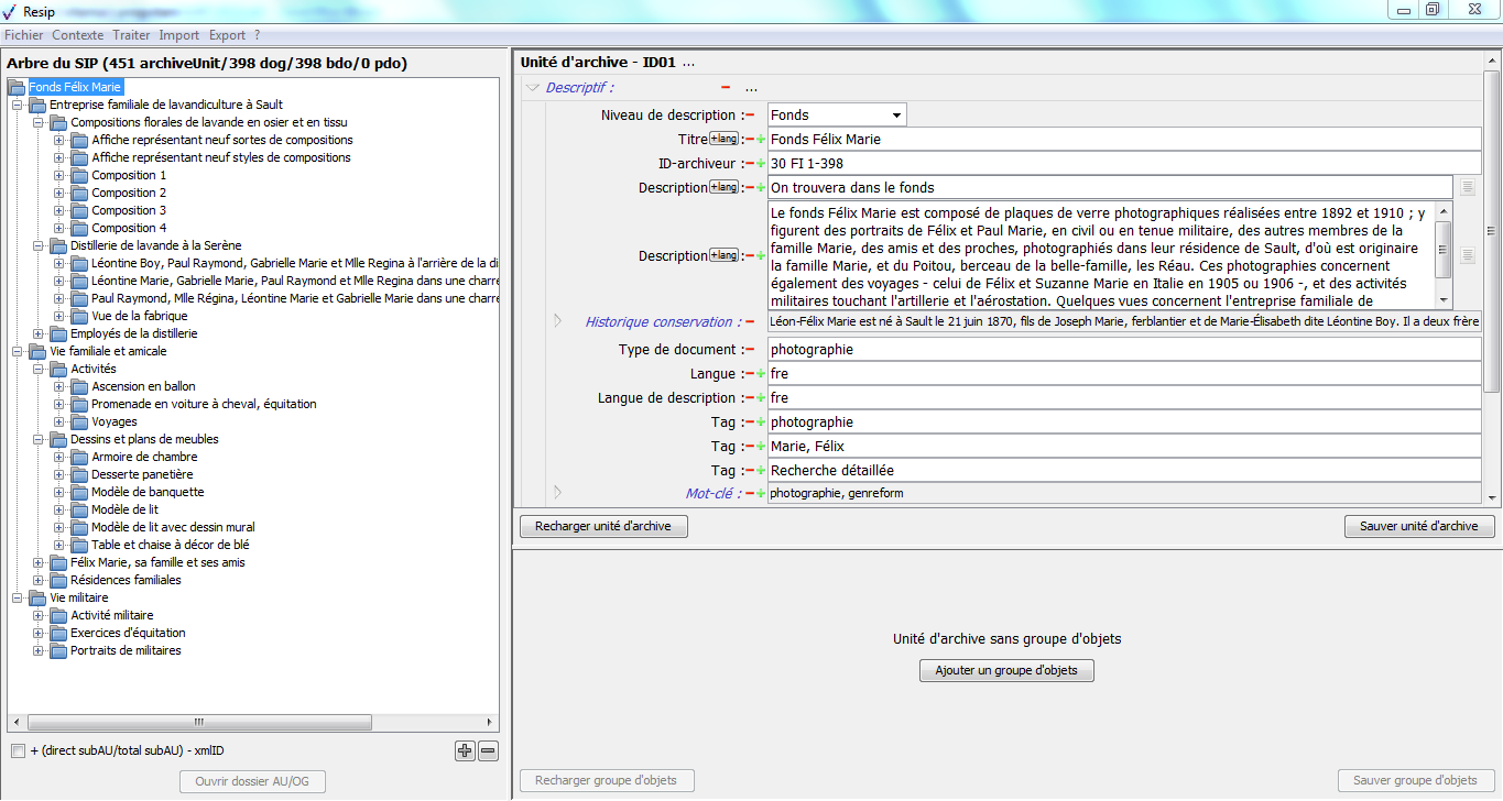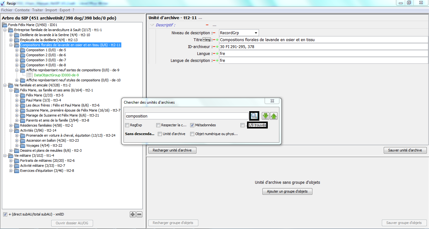 les ArchiveUnits correspondent à la description des archives elles-mêmes, qu’il s’agisse de :
