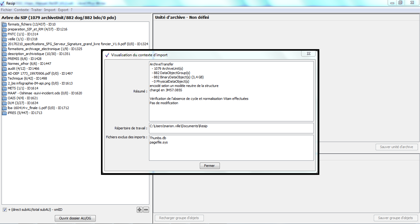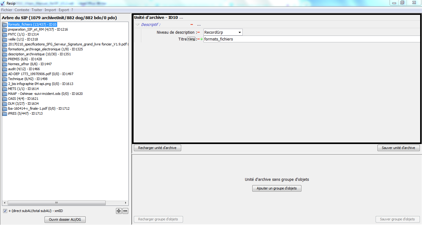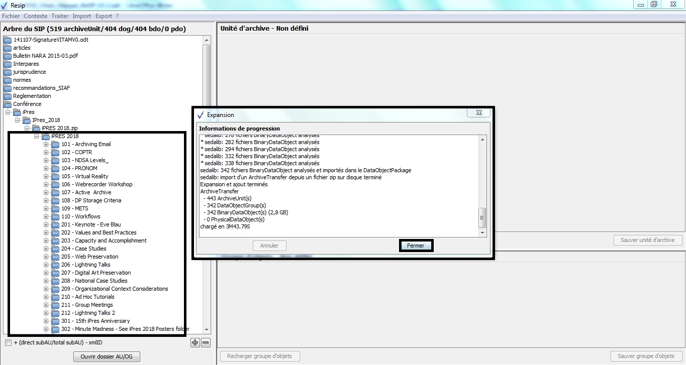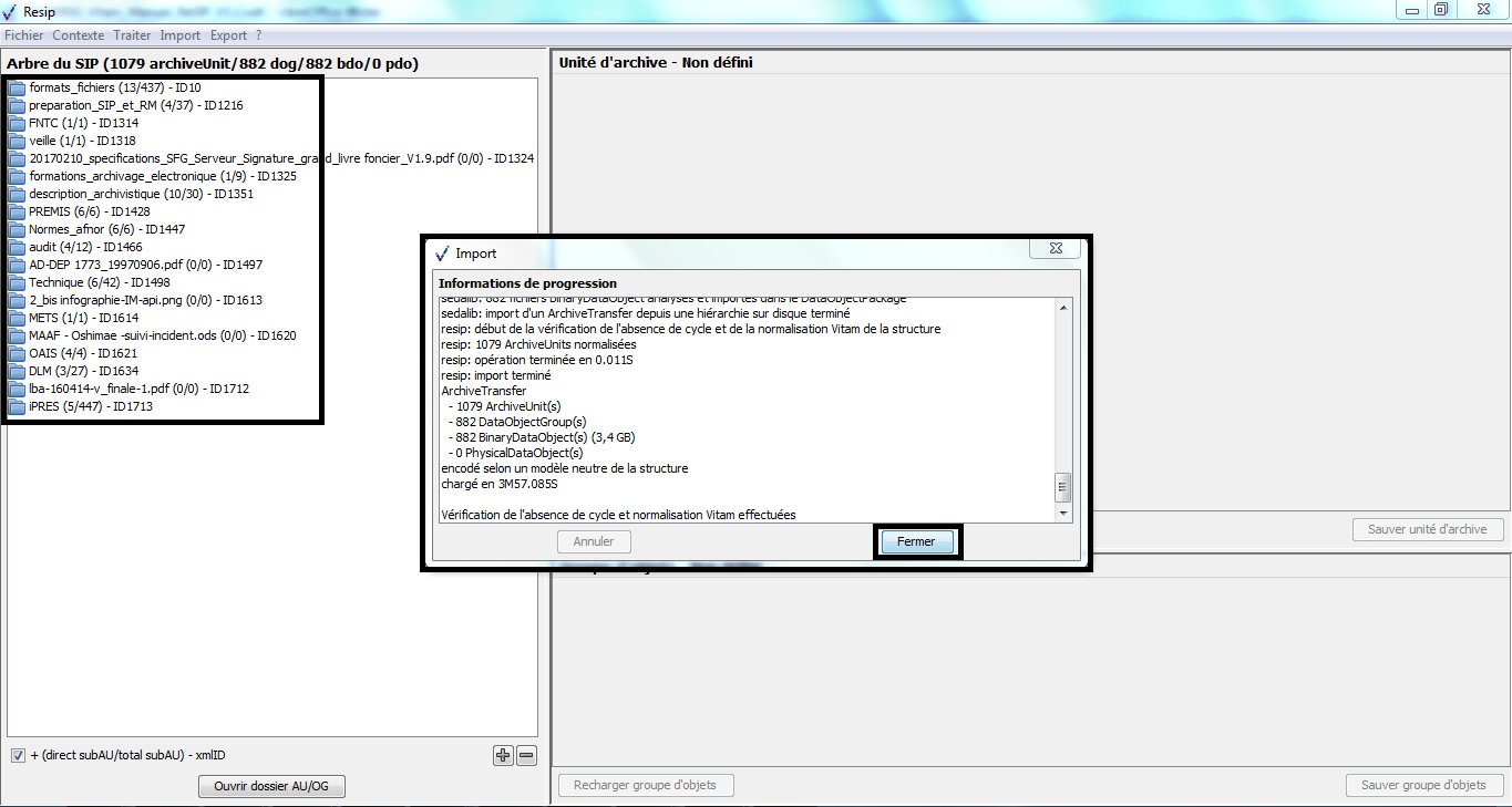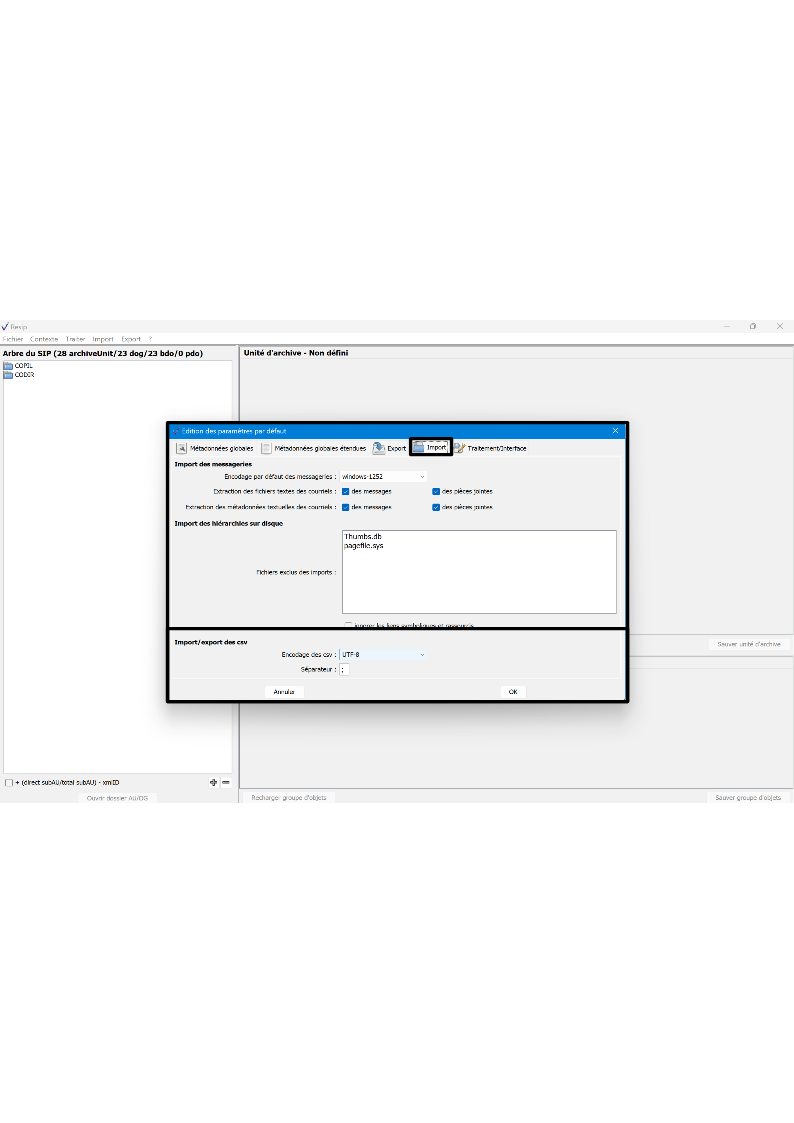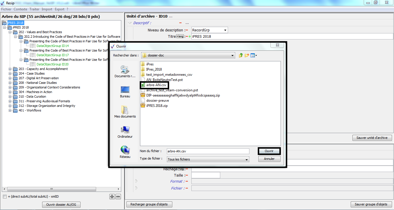 d’importer des structures arborescentes d’archives et les fichiers qui les représentent ;