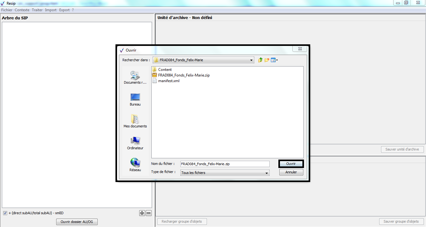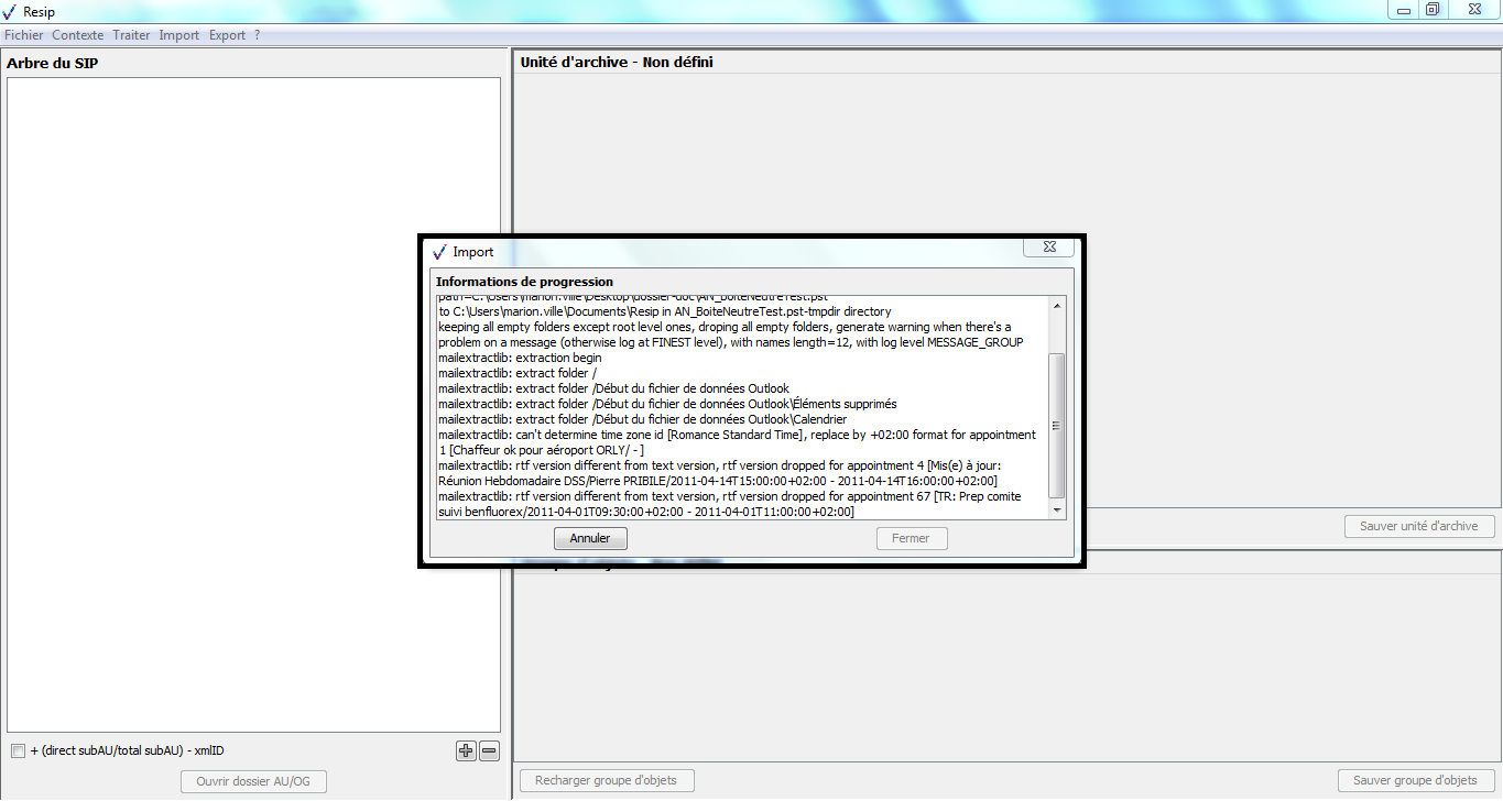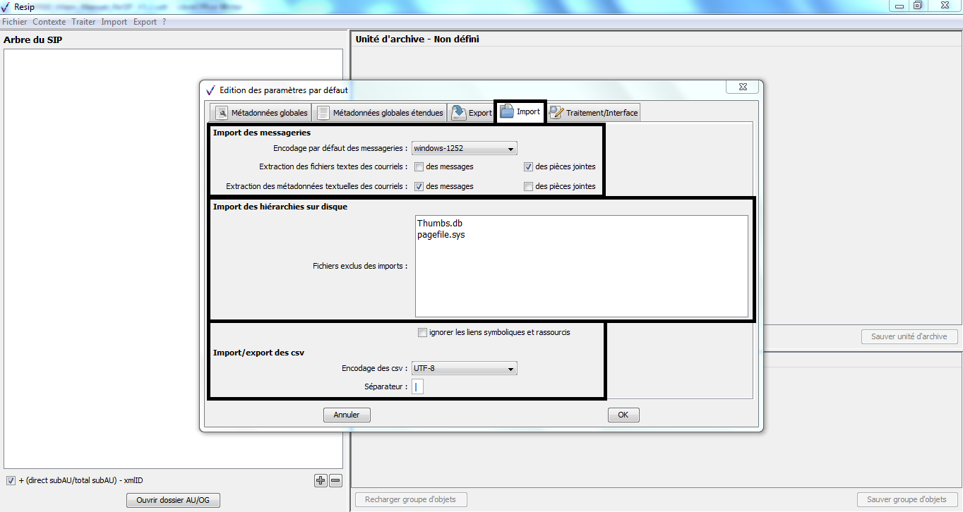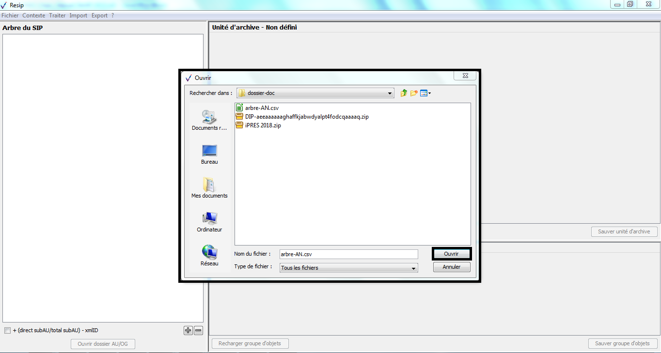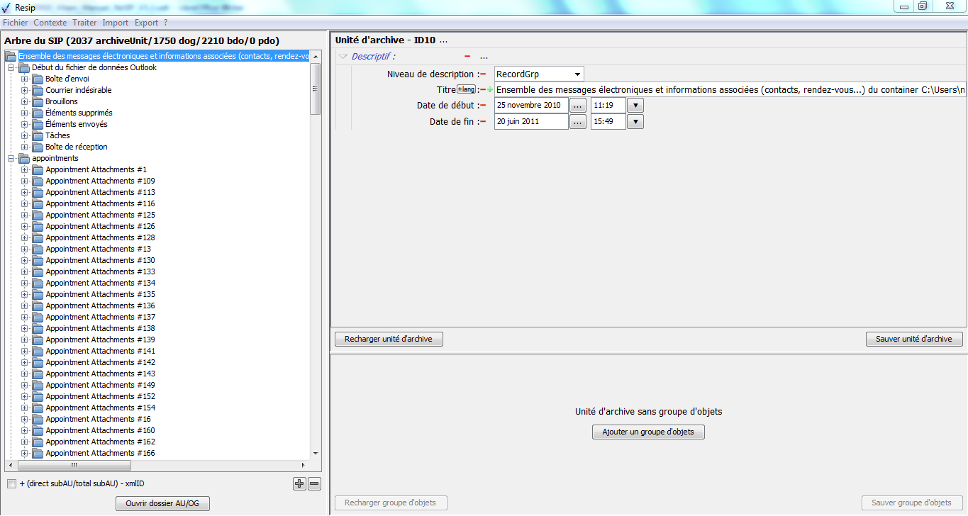 d’importer des structures arborescentes d’archives et les fichiers qui les représentent ;