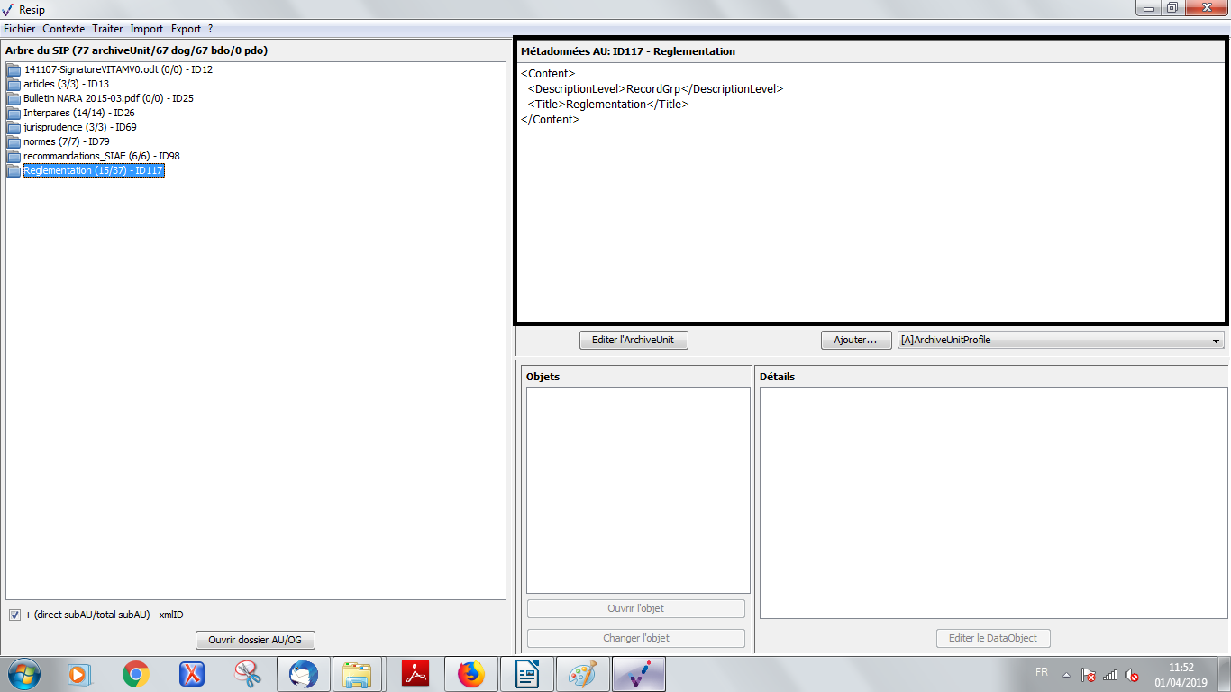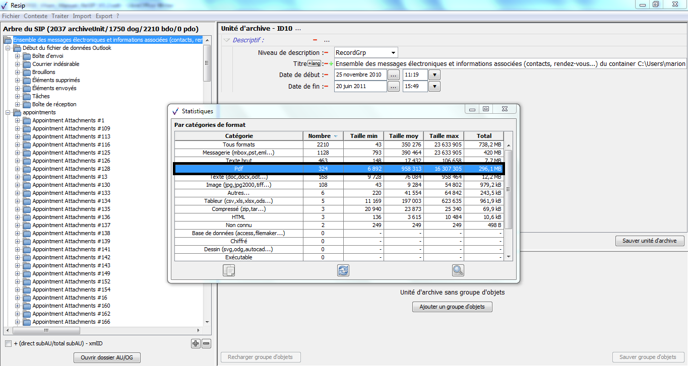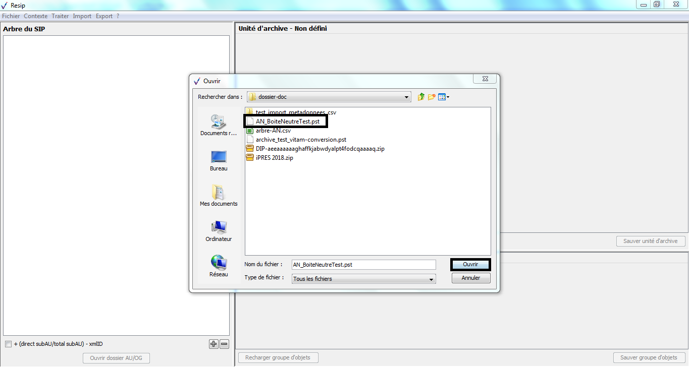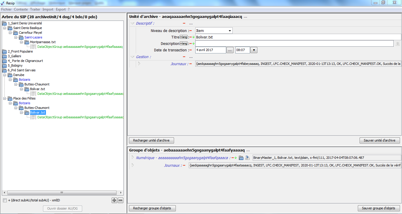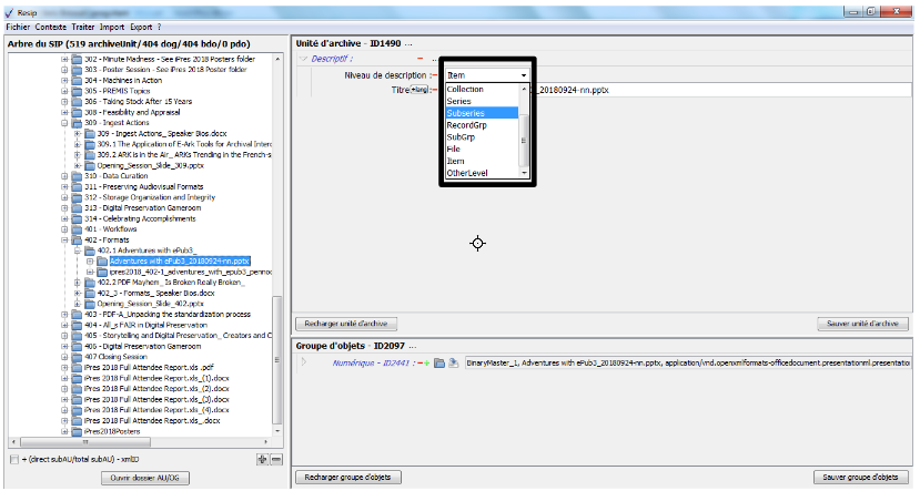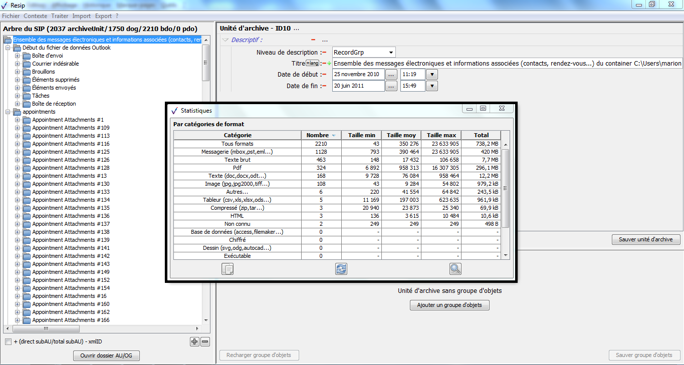 d’importer des structures arborescentes d’archives et les fichiers qui les représentent ;