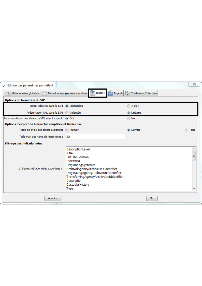 Définition des informations globales utiles à la génération du SIP (MessageIdentifier, etc.) dans le fichier nommé « ExportContext.config » |