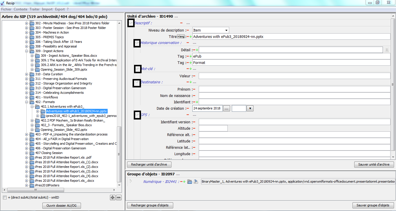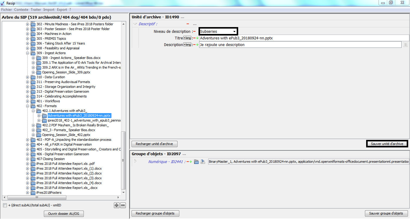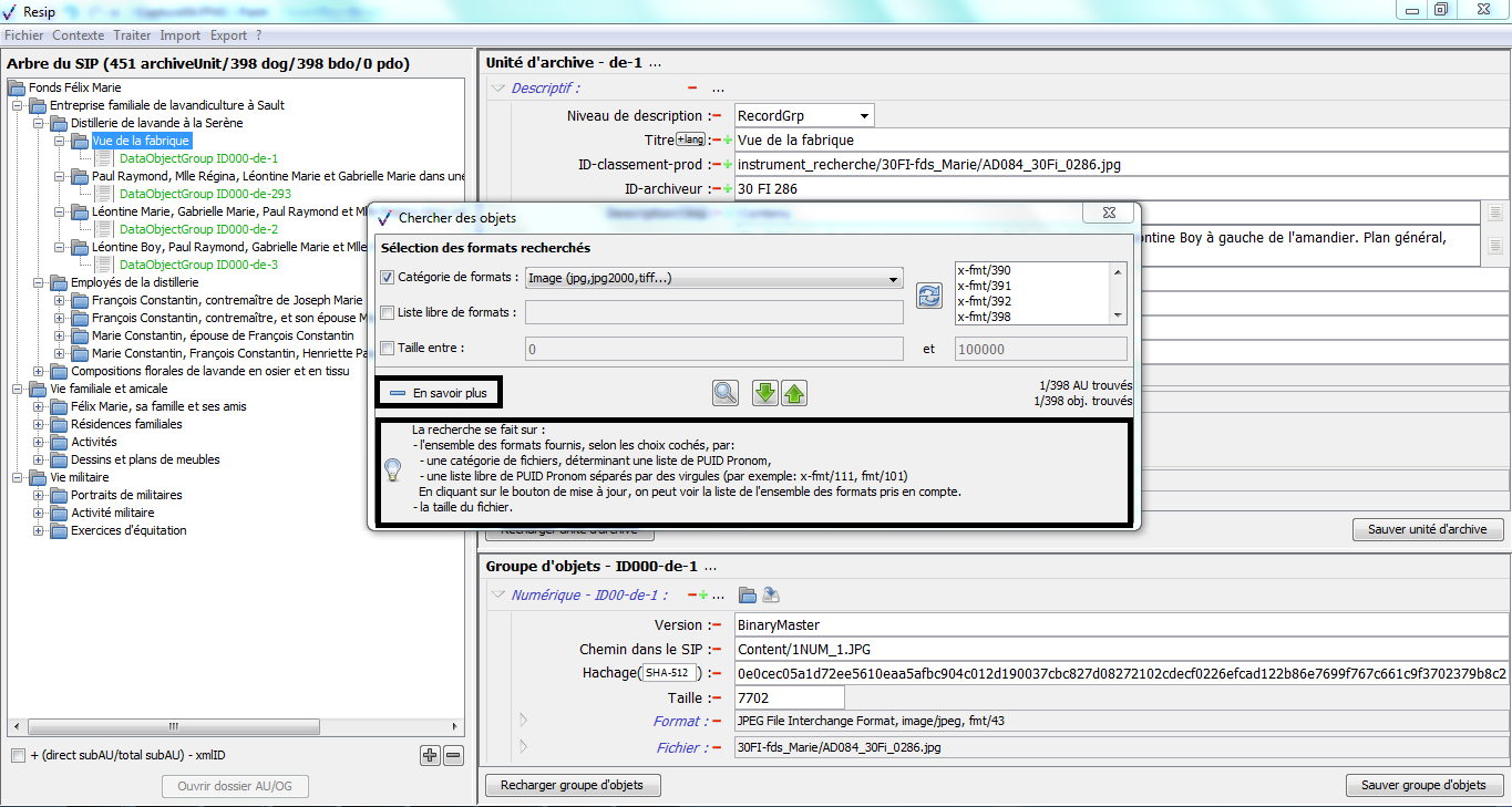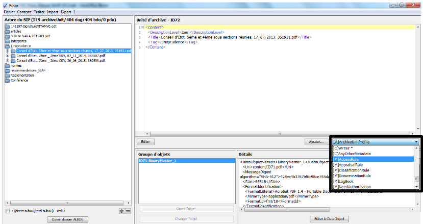 d’enrichir les métadonnées de description et de gestion des unités archivistiques (ArchiveUnits) ainsi que les métadonnées techniques des fichiers (BinaryDataObjects) ;