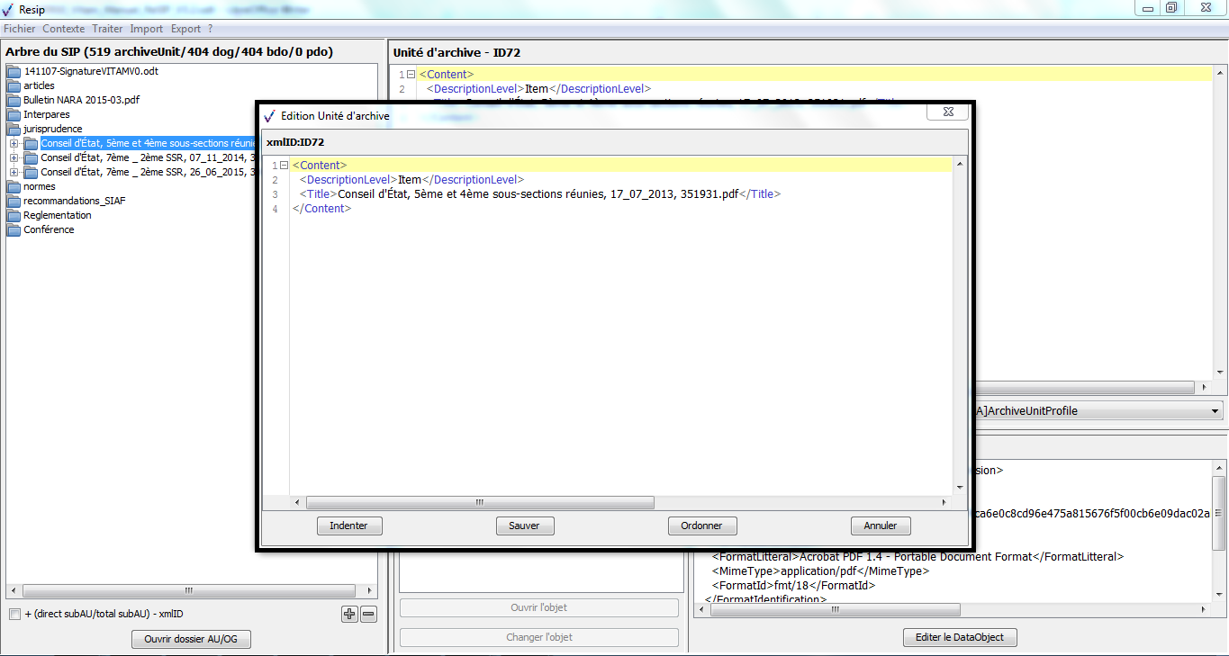 Le présent document présente la moulinette ReSIP construite autour d’une bibliothèque JAVA appelée Sedalib et fédérant les moulinettes précédemment développées et mises à disposition par l’équipe Vitam :