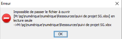 Si le problème se vérifie, il est recommandé de prendre contact avec son service informatique en vue de se voir octroyer des droits plus élargis sur les fichiers et répertoire de l’arborescence bureautique à récupérer sur les serveurs de son organisation.
