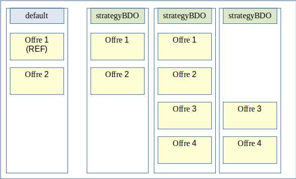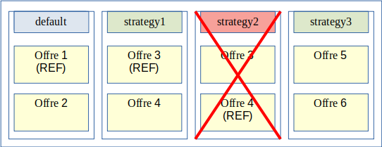 En mode multi-stratégies, un acte d’exploitation permet d’ajouter des stratégies supplémentaires à une plate-forme Vitam. Les offres de ces stratégies prennent aussi en compte la notion d’offre dite « référente » et leur identifiant doit être différent de « default ».