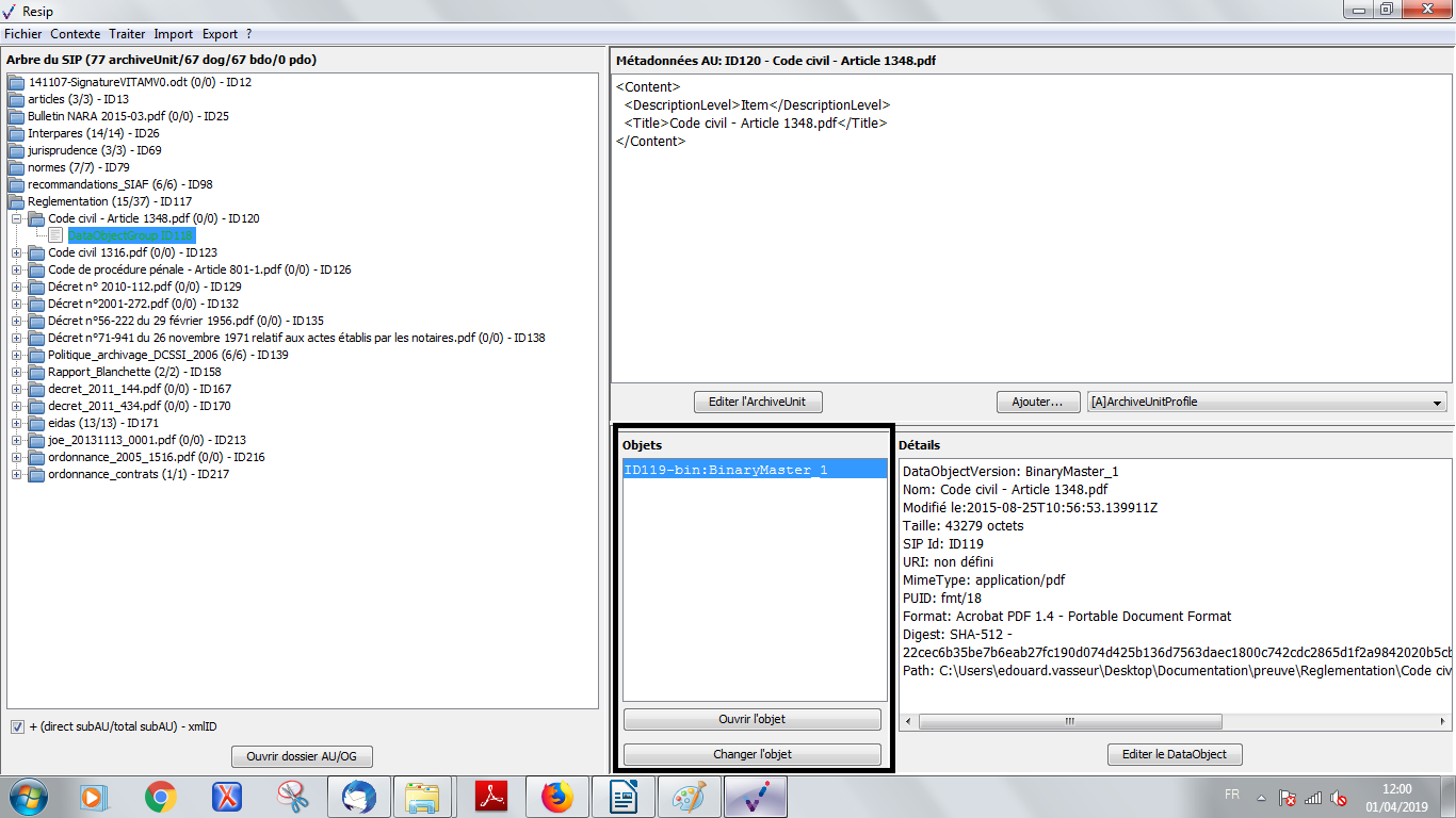 les BinaryDataObject correspondent aux fichiers numériques représentant les archives ;
