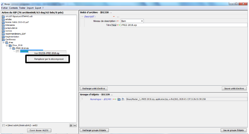 d’importer des structures arborescentes d’archives et les fichiers qui les représentent ;
