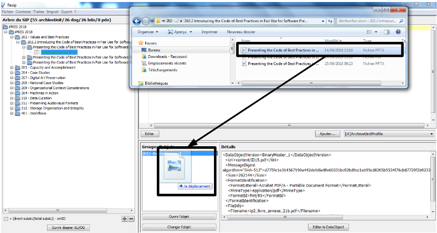 en effectuant un « glisser/déposer » (drag and drop) d’un répertoire de fichiers sur le script ReSip.bat pour créer directement un SIP ;