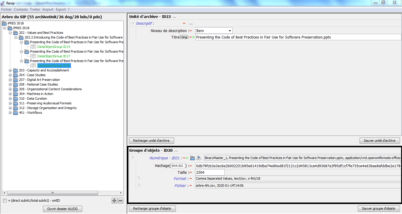 Nous vous invitons également à prendre connaissance du billet de blog du SIAF daté du 30 septembre 2019 et intitulé « Trois outils contribuant à l’archivage numérique » : il vous permettra de voir d’un seul coup d’œil les fonctionnalités de ReSIP en lien avec deux autres outils, Archifiltre et Octave. Ce billet est consultable en suivant ce lien : https://siaf.hypotheses.org/1033[1].