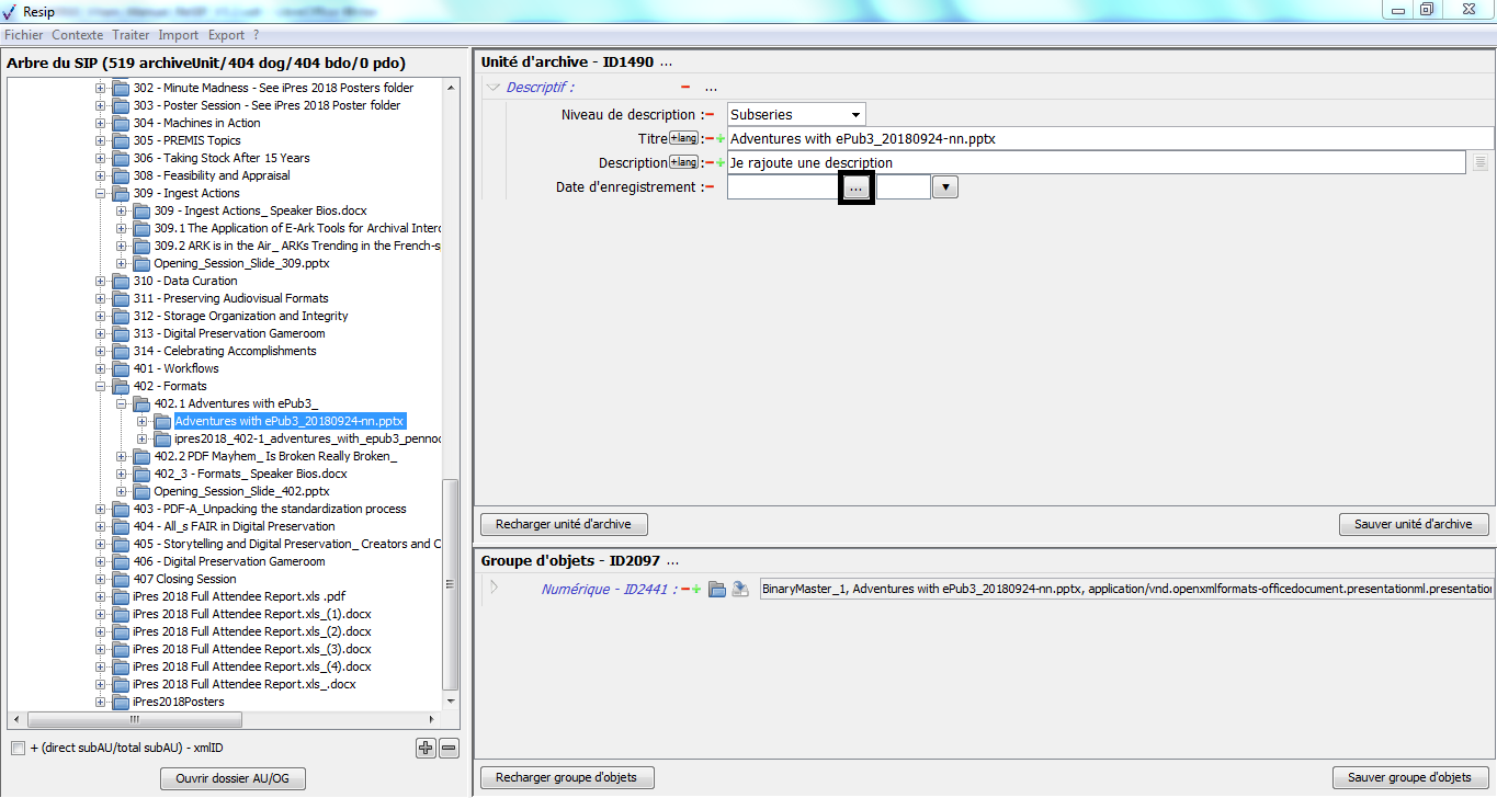 d’enrichir les métadonnées de description et de gestion des unités archivistiques (ArchiveUnits) ainsi que les métadonnées techniques des fichiers (BinaryDataObjects) ;