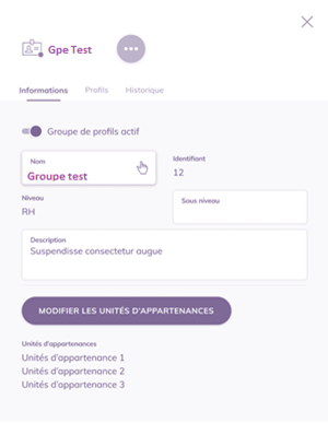 A ce titre, le référentiel des utilisateurs doit fournir une information utilisateur appelée « Unité » qui déterminera quel groupe de profil utiliser :