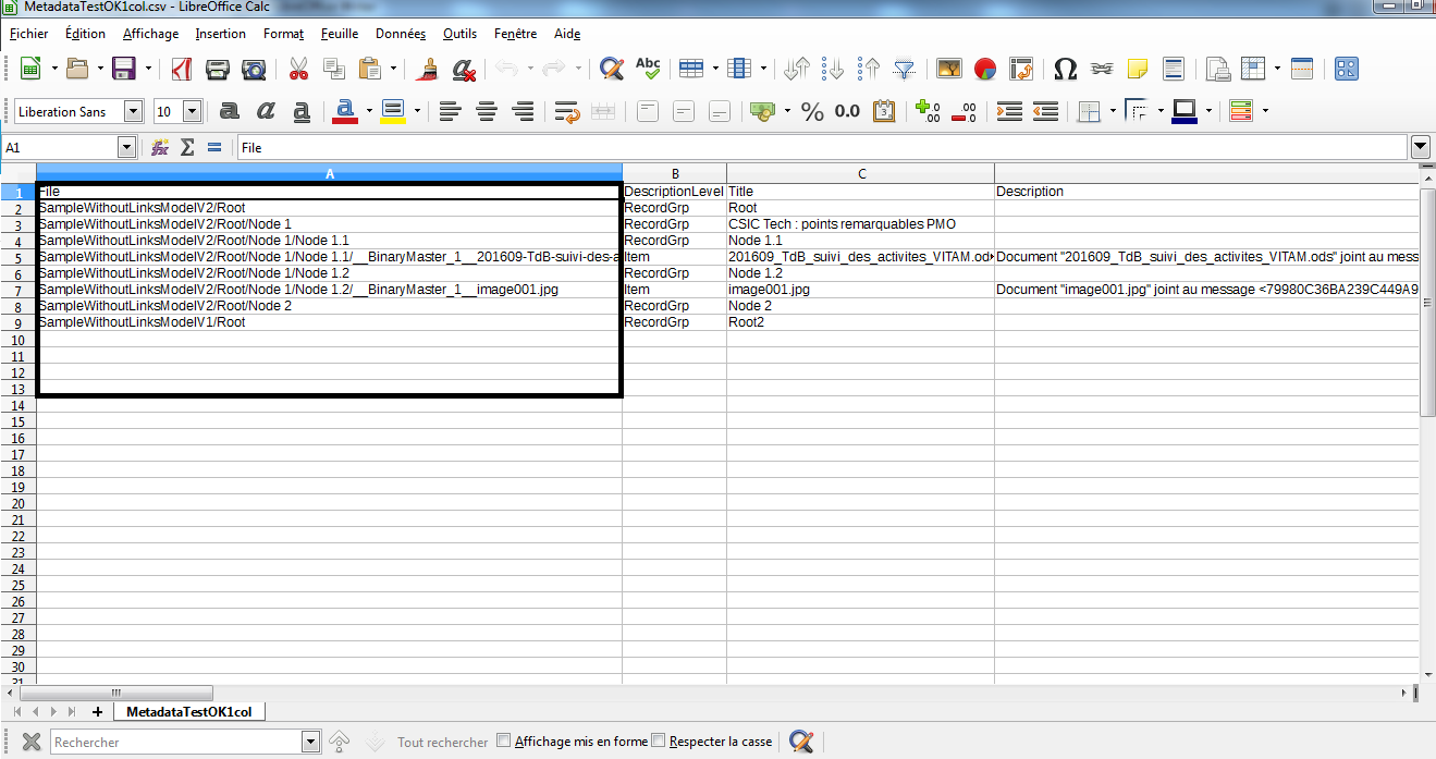 Si on souhaite importer un fichier .csv avec des objets numériques associés, se référer au chapitre 4.6 « Import depuis un fichier .csv décrivant une structure arborescente d’archives et/ou de fichiers » du présent document.