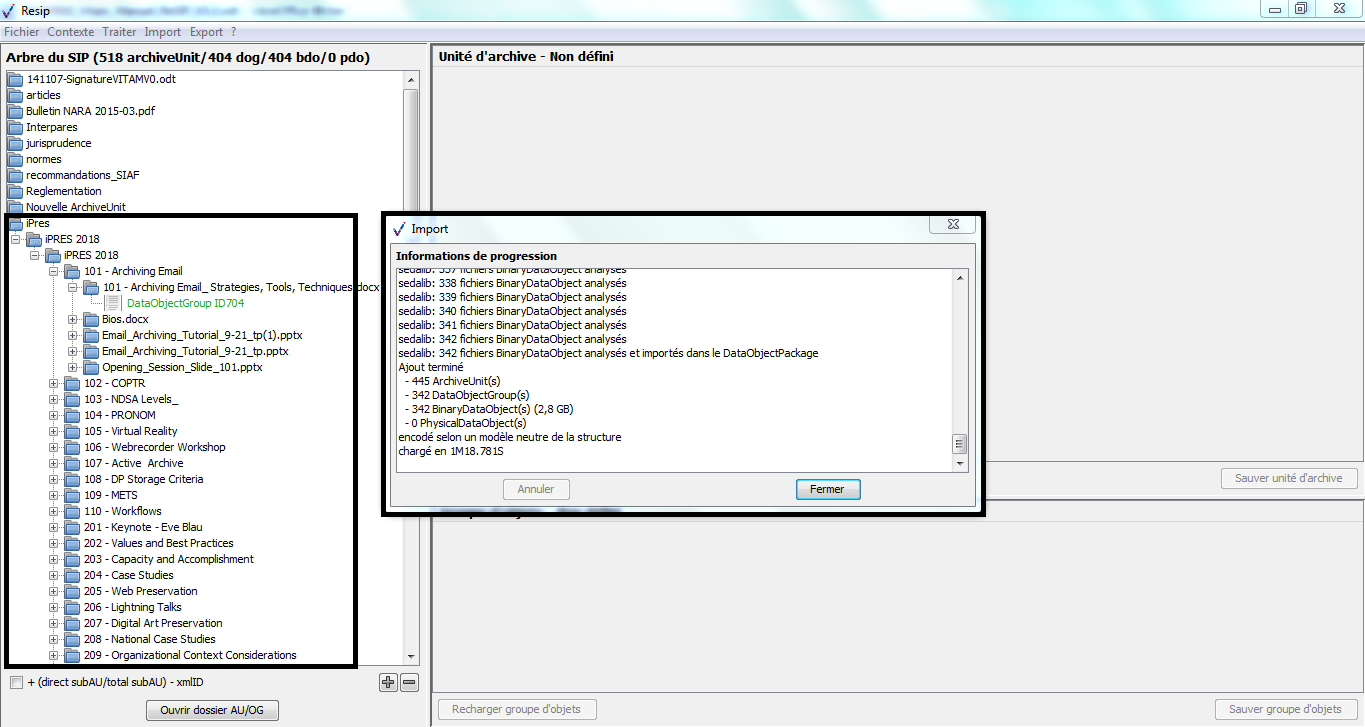 • d’importer des structures arborescentes d’archives et les fichiers qui les représentent ;